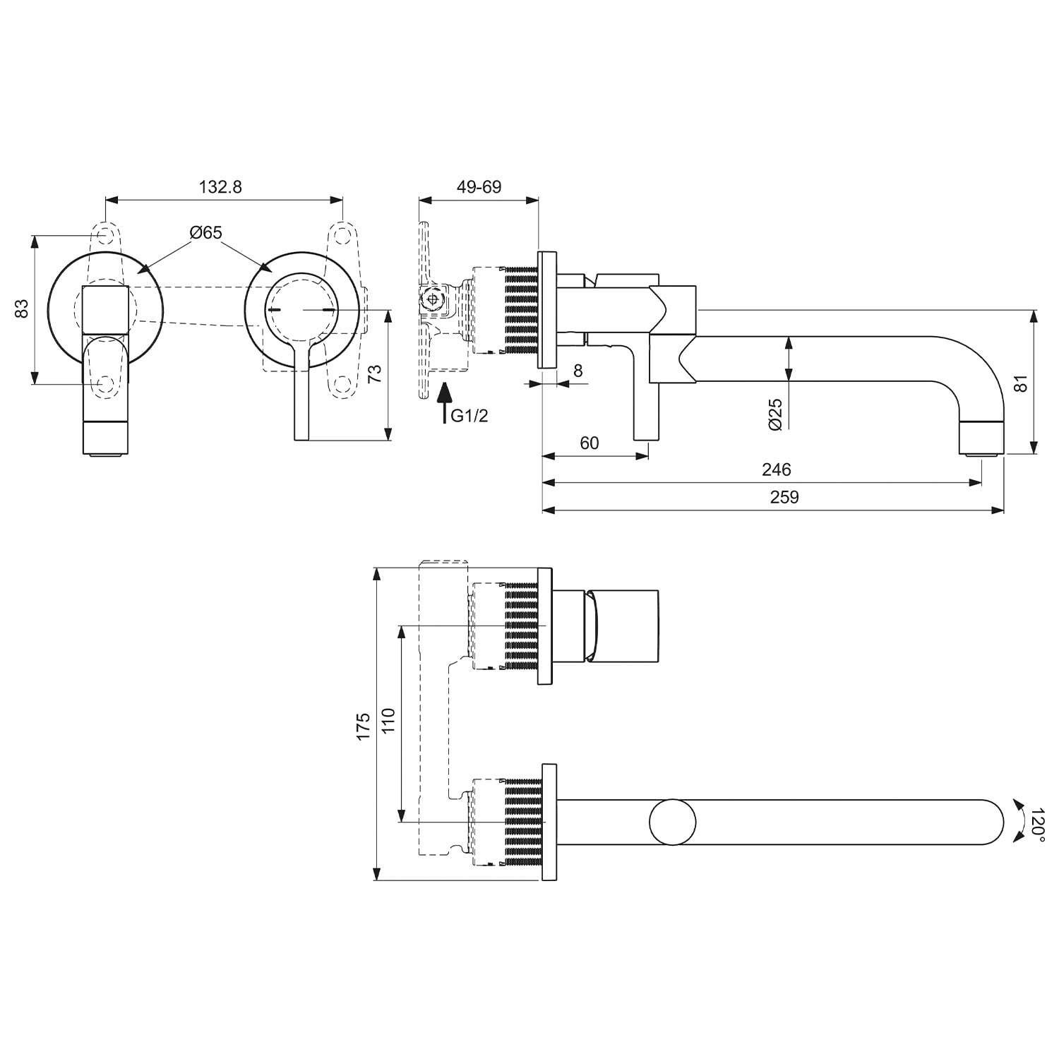 Ideal Standard Gusto Wand-Küchenarmatur Ausladung 24,6 cm