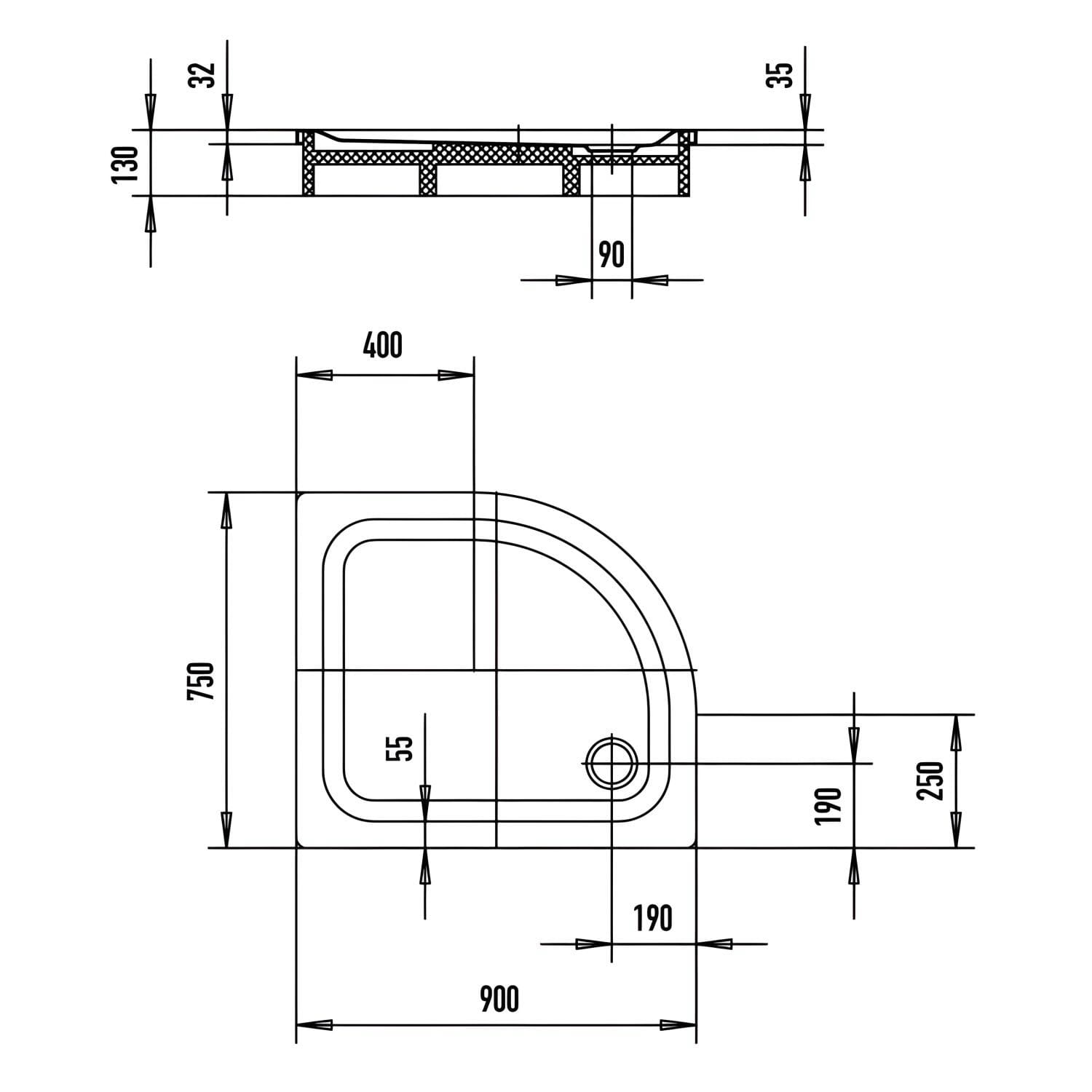 Kaldewei Zirkon 501-2 Viertelkreis-Duschwanne 90 x 75 x 3,5 cm mit Wannenträger