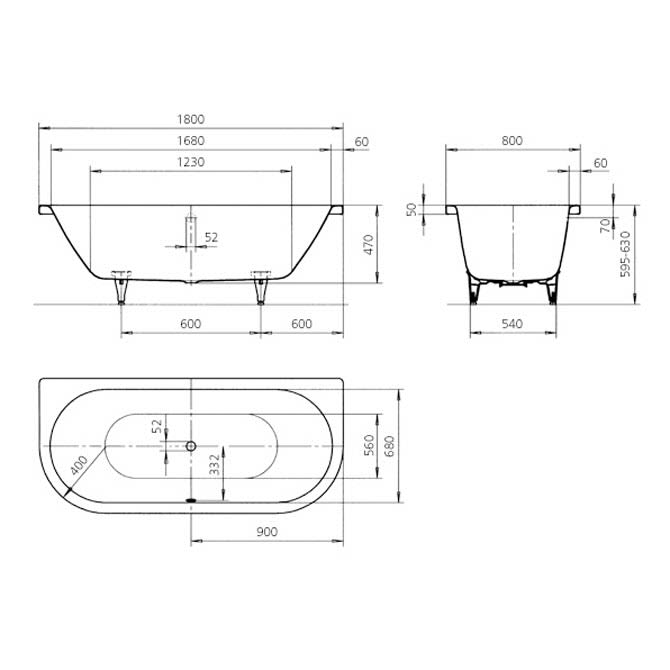 Kaldewei CENTRO DUO 2 Mod. 135 Badewanne 180 x 80 cm, links und rechts abgerundet