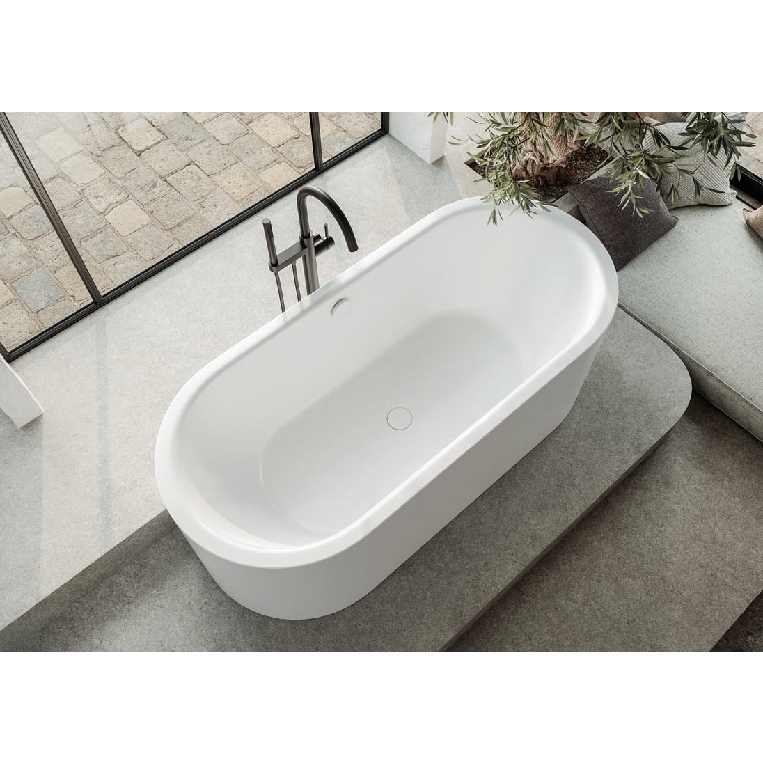 Freistehende Badewannen aus hochwertigem Stahl-Emaille verkörpern puristische Einfachheit und schlichte Eleganz. Ihre aus einem Stück gefertigte Verkleidung unterstreicht den hohen Designanspruch und ermöglicht eine freistehende Platzierung im Badezimmer. Die emaillierte Ablaufabdeckung und der Überlaufknauf, optional auch mit Füllfunktion erhältlich, sind nahtlos in das Badewannen-Design integriert.