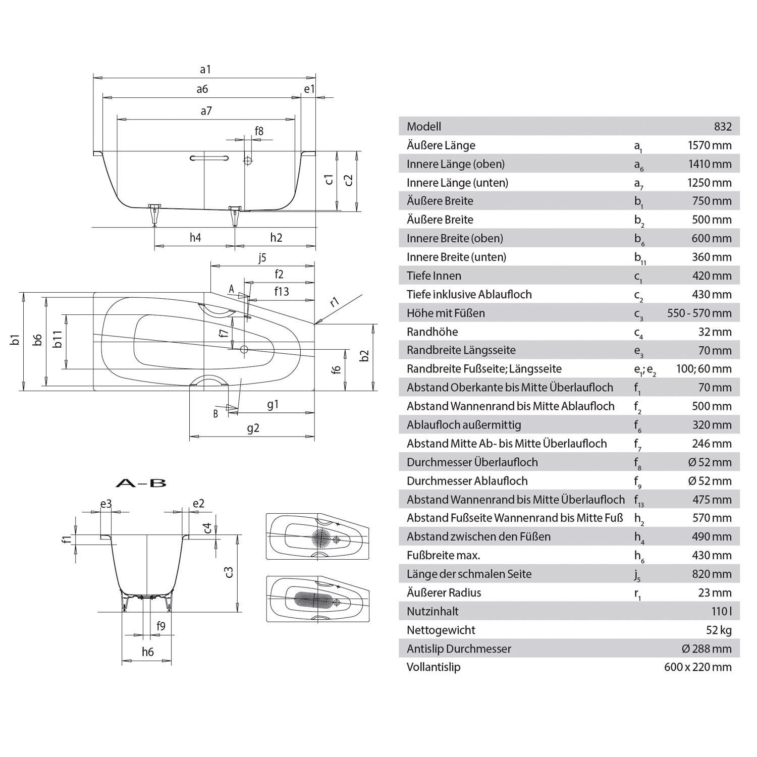 - Nutzinhalt ca 110 Liter