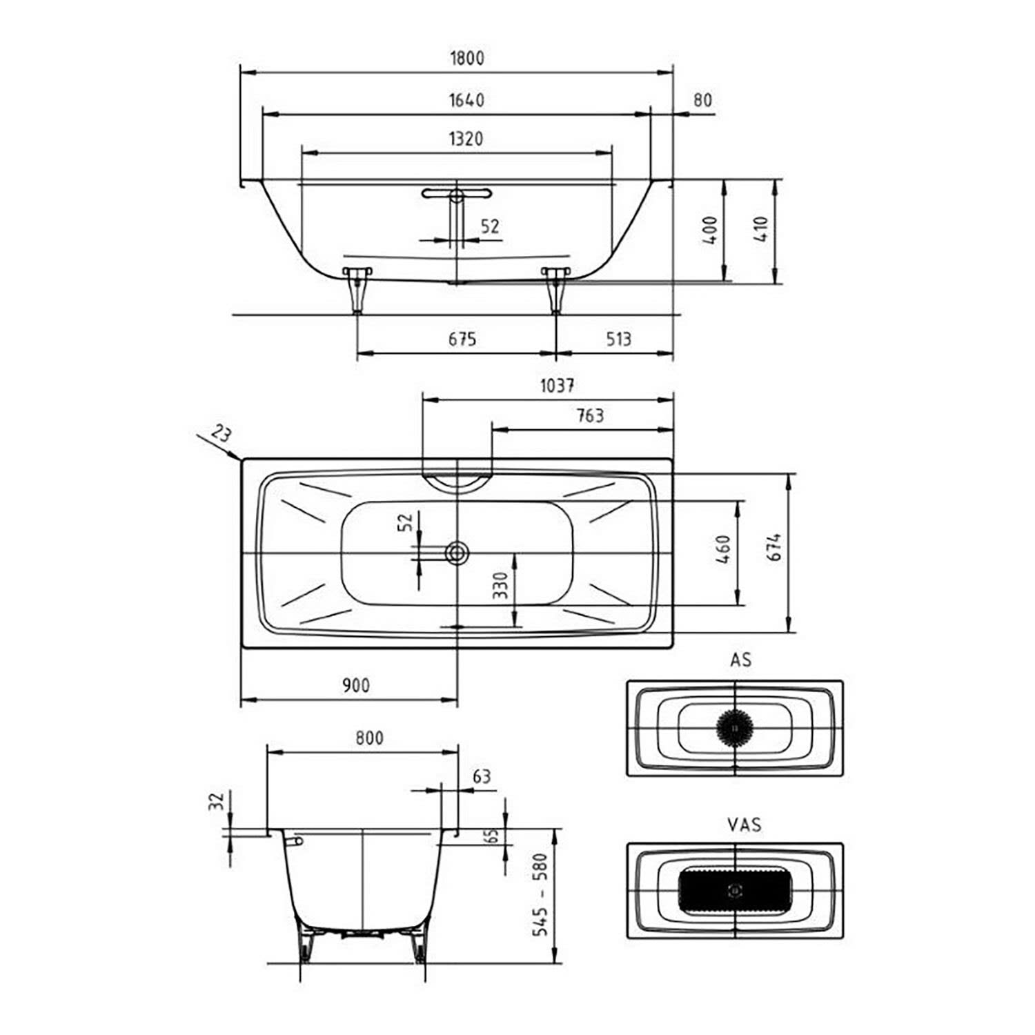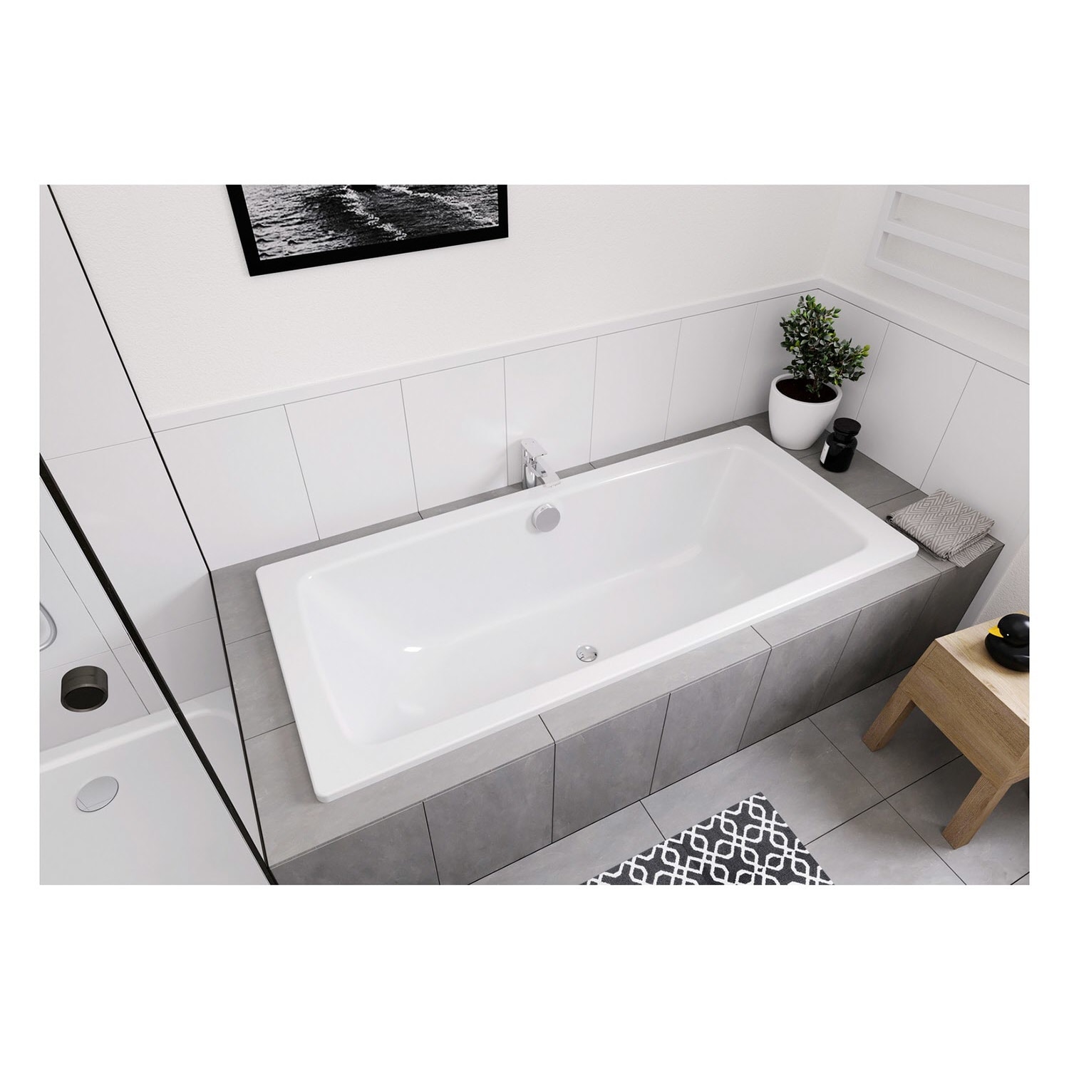 - moderne Rechteckbadewanne, geradlinig und geringe Radien