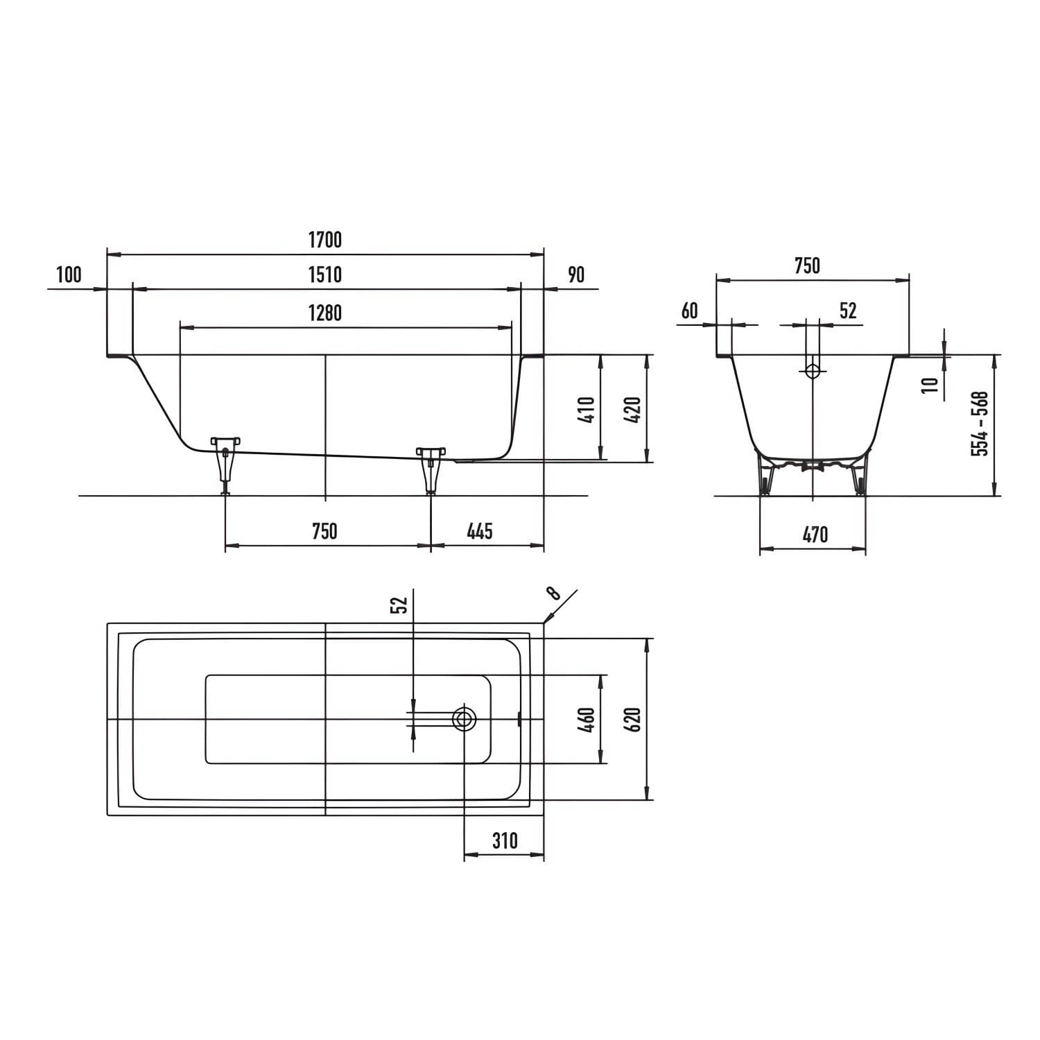 - PURO NEXT Badewannen sind auch mit marktüblichen Ablaufgarnituren gemäß DIN EN 232 kompatibel