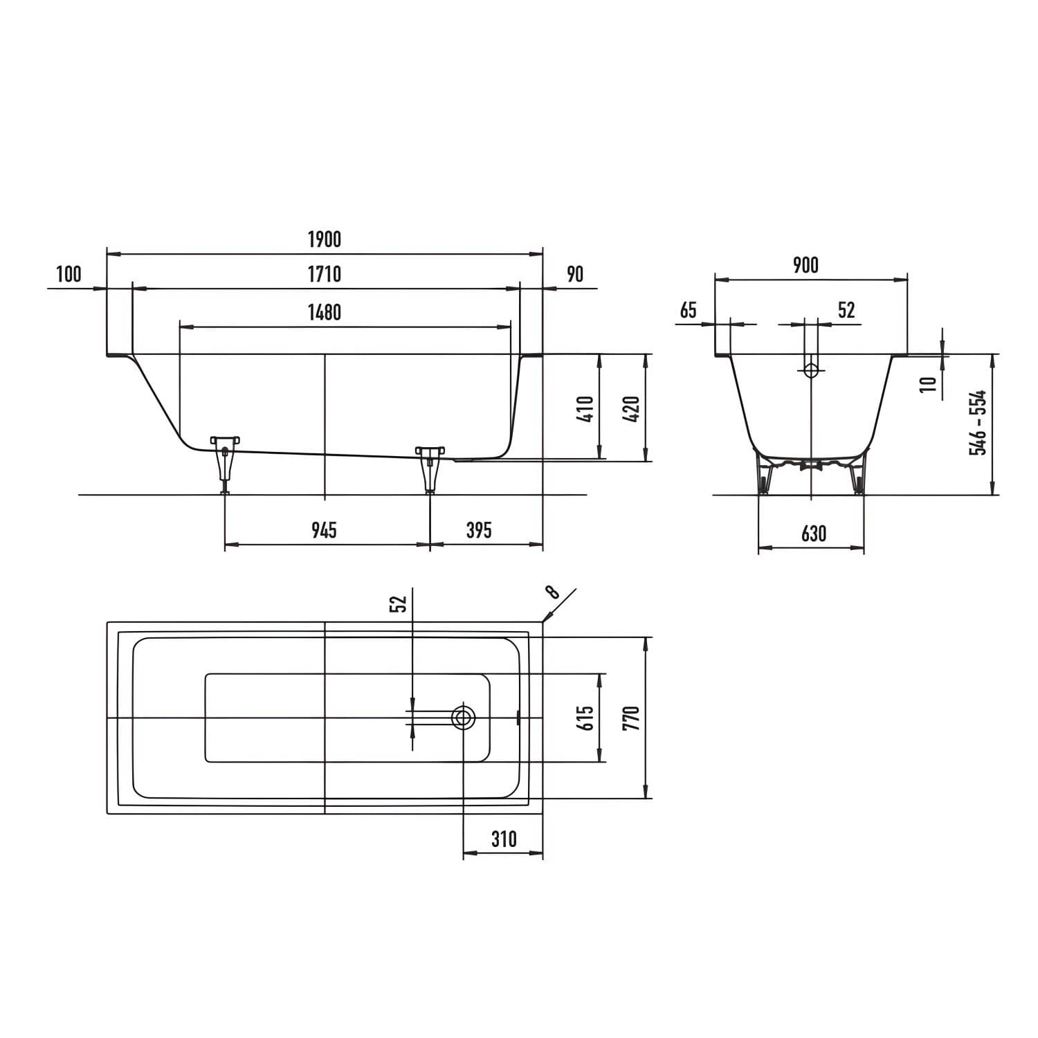 Kaldewei PURO NEXT Mod. 1430 Badewanne 190 x 90 cm