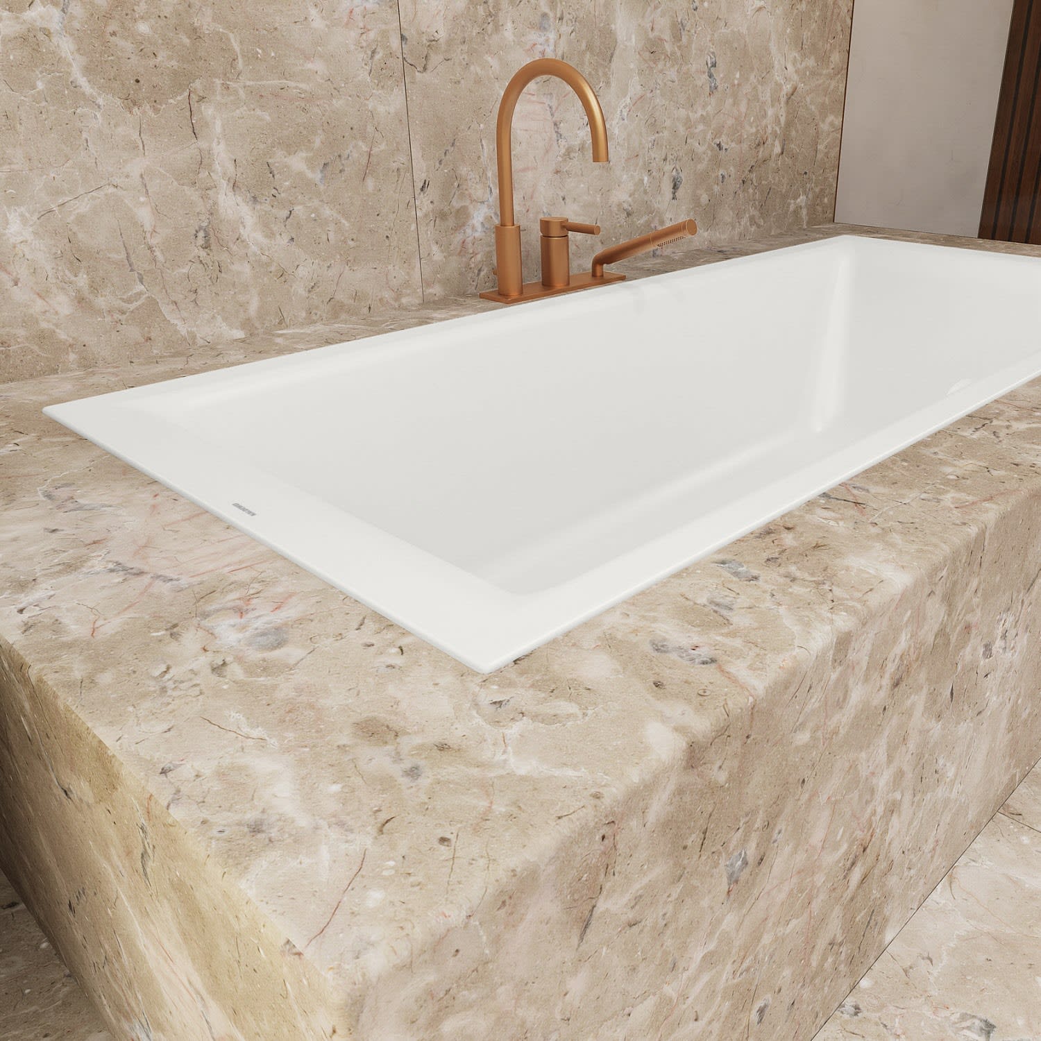 Zwei ergonomisch geformte Rückenschrägen mit sanft auslaufender Nackenzone und ein zentral positionierter Ablauf sorgen für maximalen Liegekomfort – auch beim Baden zu zweit.