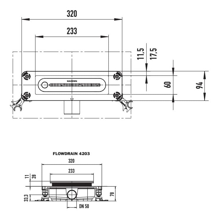 Kaldewei FLOWPOINT-Set Punktablauf 2410 mit FLOWDRAIN 4203 horizontal regular