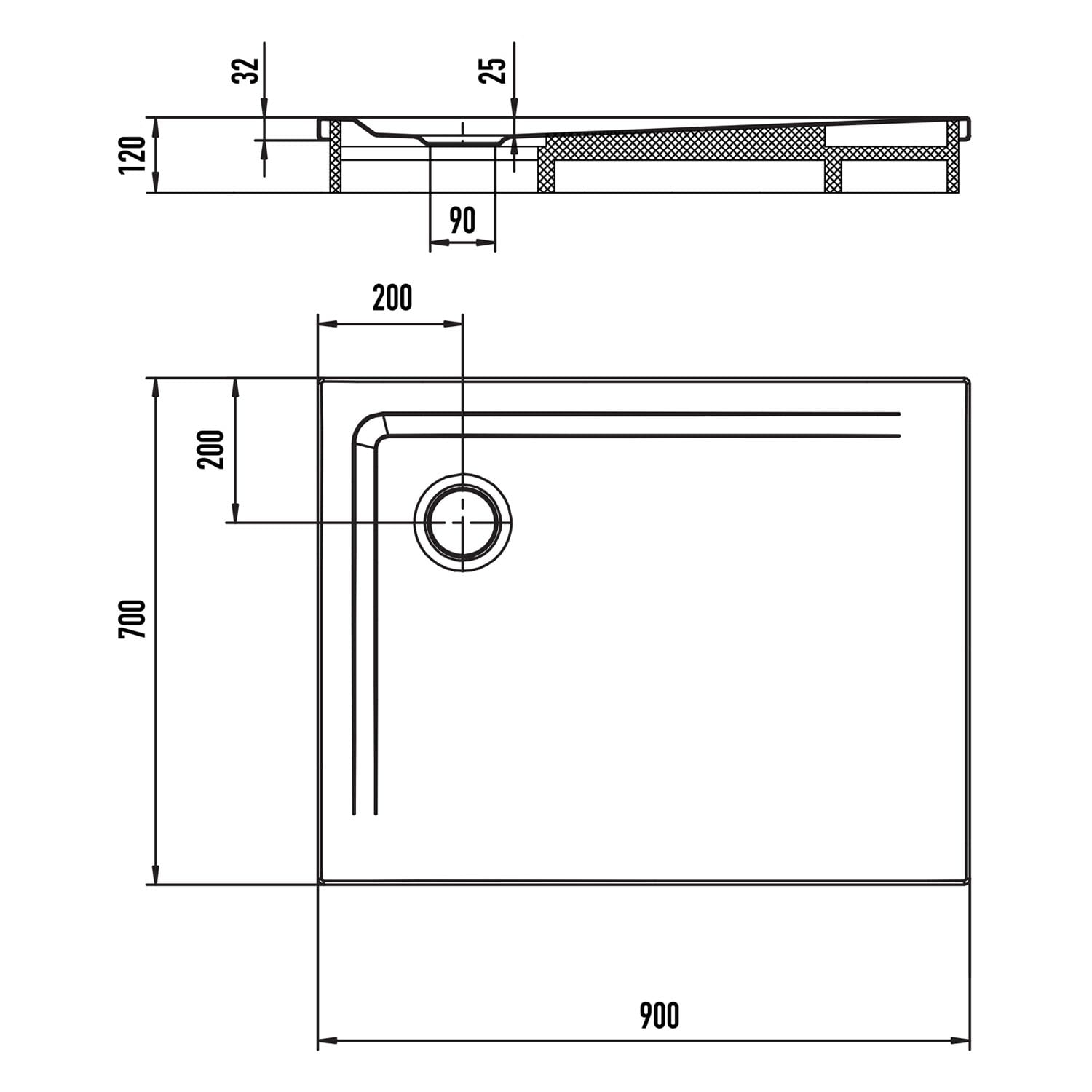 - Ablaufgarnitur KA 90 perfekt auf Duschfläche abgestimmt