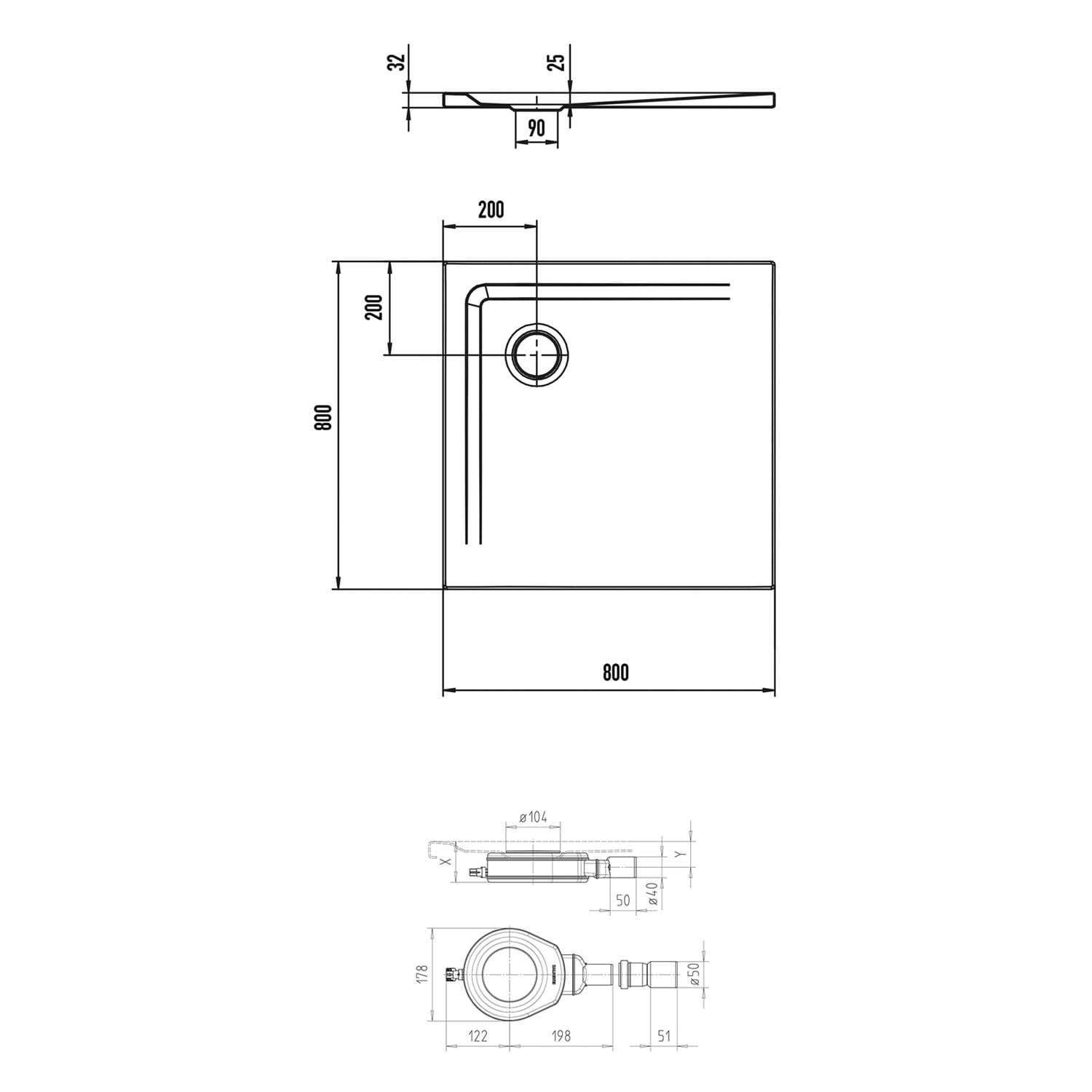 Kaldewei SUPERPLAN 1831-1 Duschwannen-Komplettset 1 80 x 80 cm, nahezu bodenebener Einbau