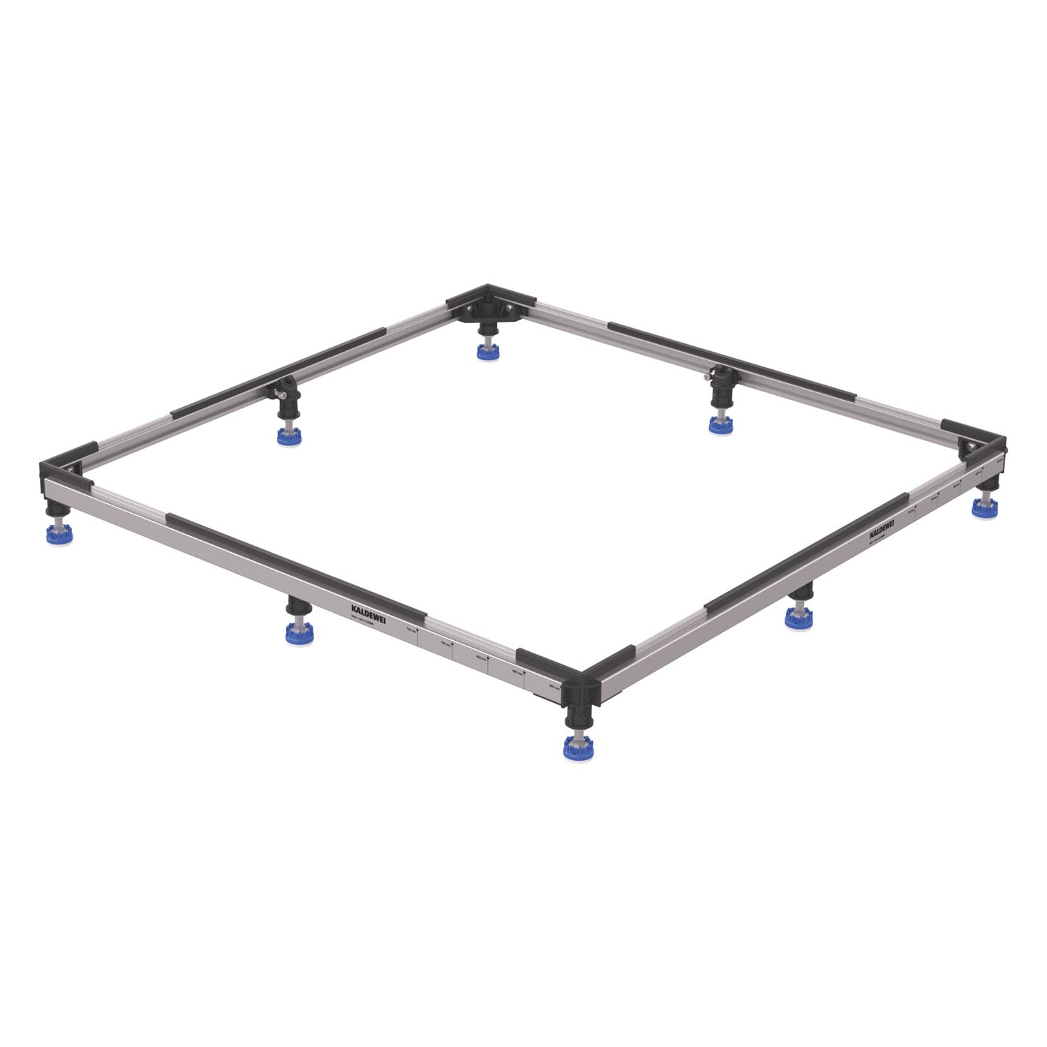 - ein stabiler, höhenverstellbarer Rahmen, der die perfekte Basis für die Installation der Duschwanne bietet. Mit seinen schallgedämmten Füßen sorgt er für eine geräuscharme Nutzung und schützt gleichzeitig die Substanz der Wanne. Dank kürzbarer Aluminiumprofile ist er flexibel an verschiedene Raummaße anpassbar und ermöglicht eine einfache Montage.