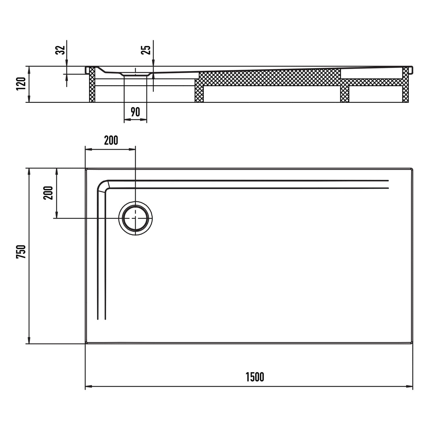 - Ablaufgarnitur KA 90 perfekt auf Duschfläche abgestimmt