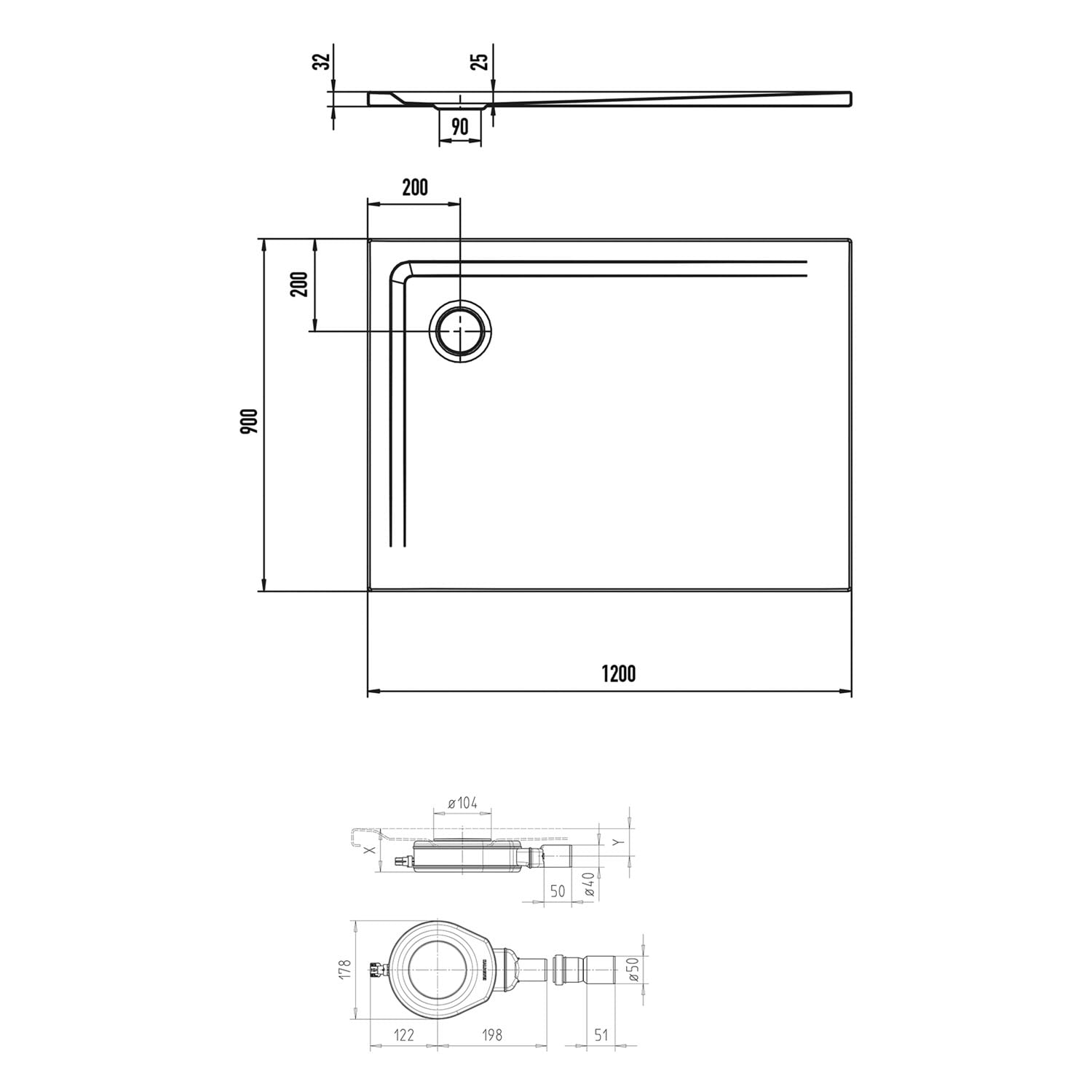 Kaldewei SUPERPLAN 1851-1 Duschwannen-Komplettset 1 90 x 120 cm, nahezu bodenebener Einbau