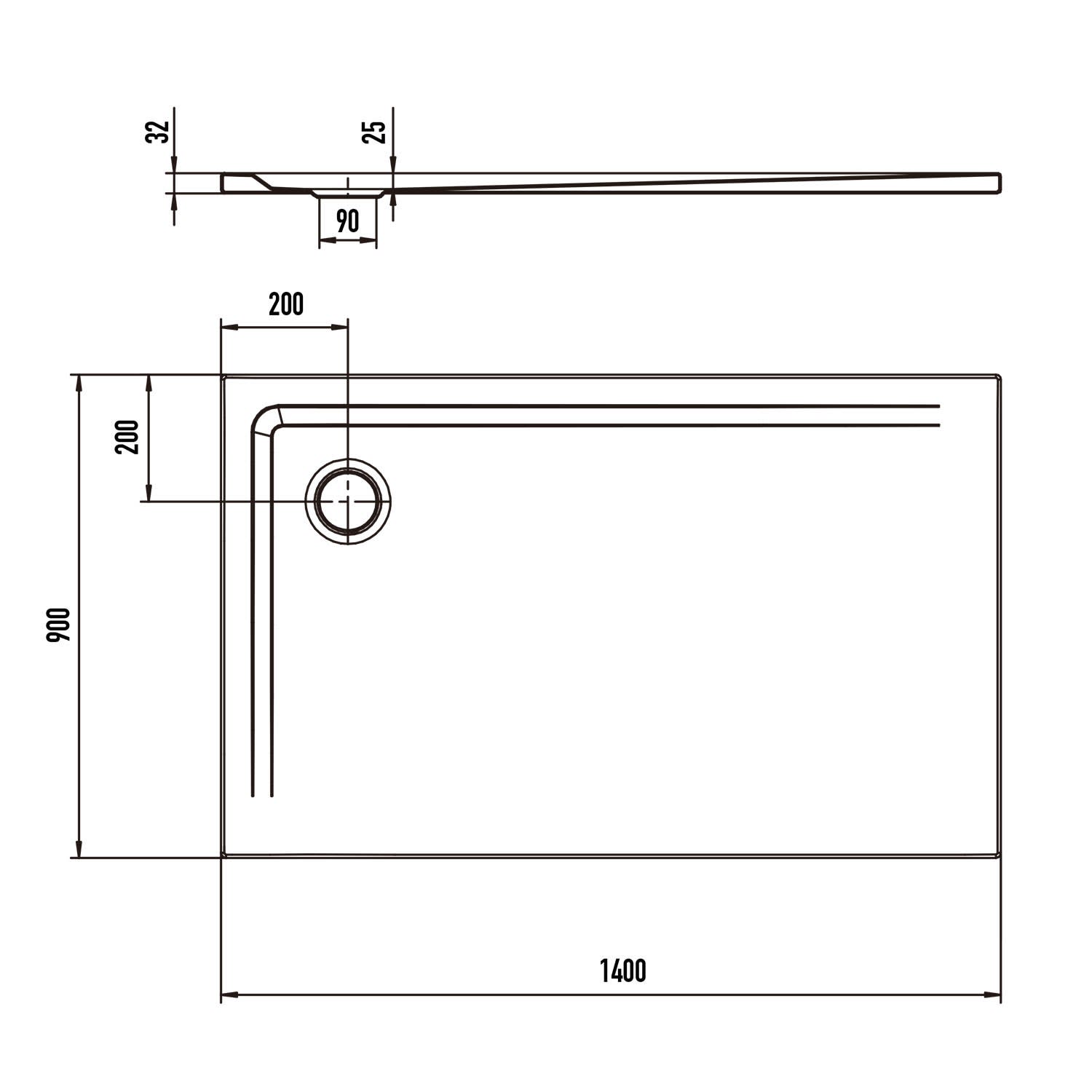 Kaldewei SUPERPLAN 1853-1 Duschwanne 90 x 140 cm mit Secure Plus