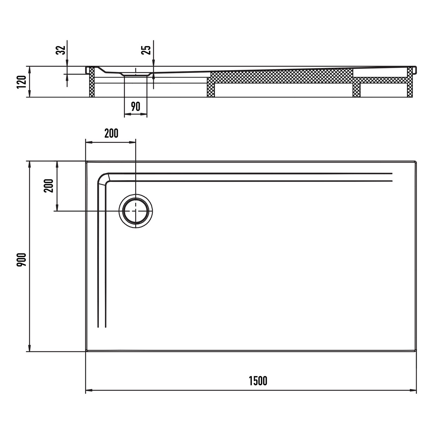 - Ablaufgarnitur KA 90 perfekt auf Duschfläche abgestimmt