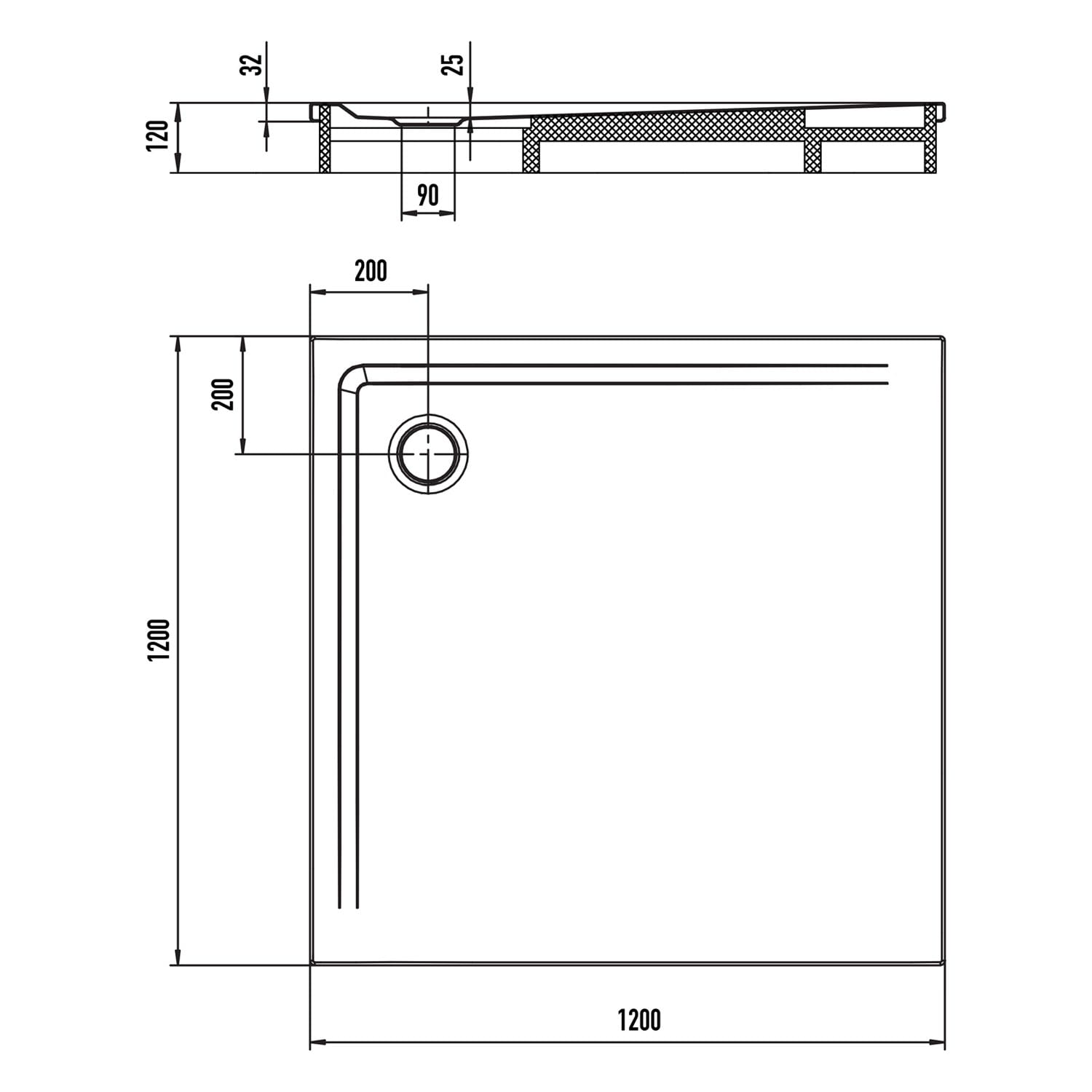 - Ablaufgarnitur KA 90 perfekt auf Duschfläche abgestimmt