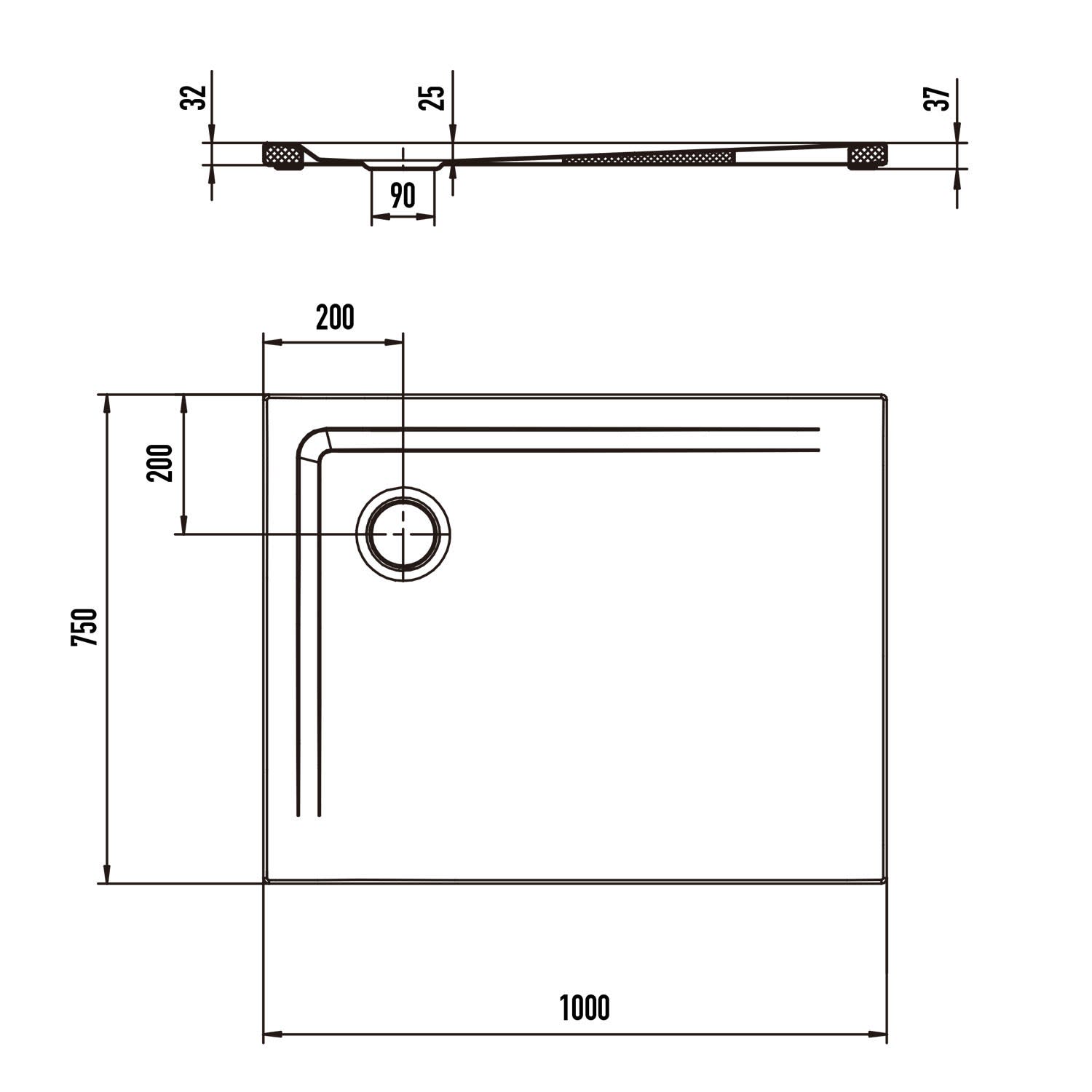 Kaldewei SUPERPLAN 1834-5 Duschwanne 75 x 100 cm mit Perl-Effekt, inkl. Wannenträger extraflach
