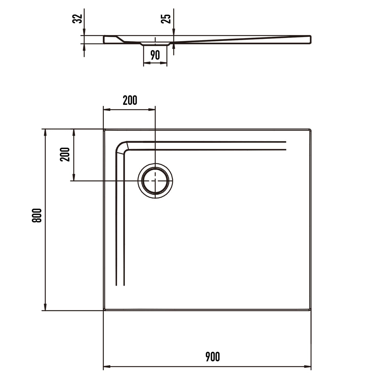 - Ablaufloch Ø 9 cm
