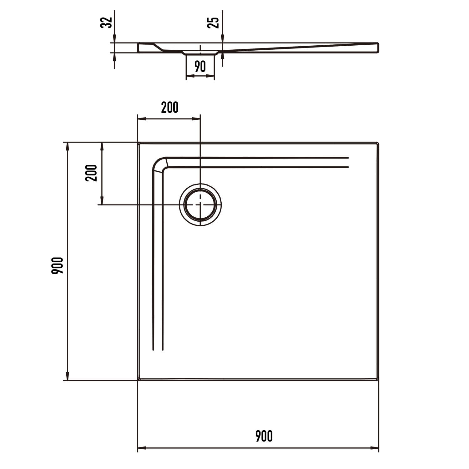 Steel Plan Stahl-Duschwanne superflach 90 x 90 x 2,5 cm