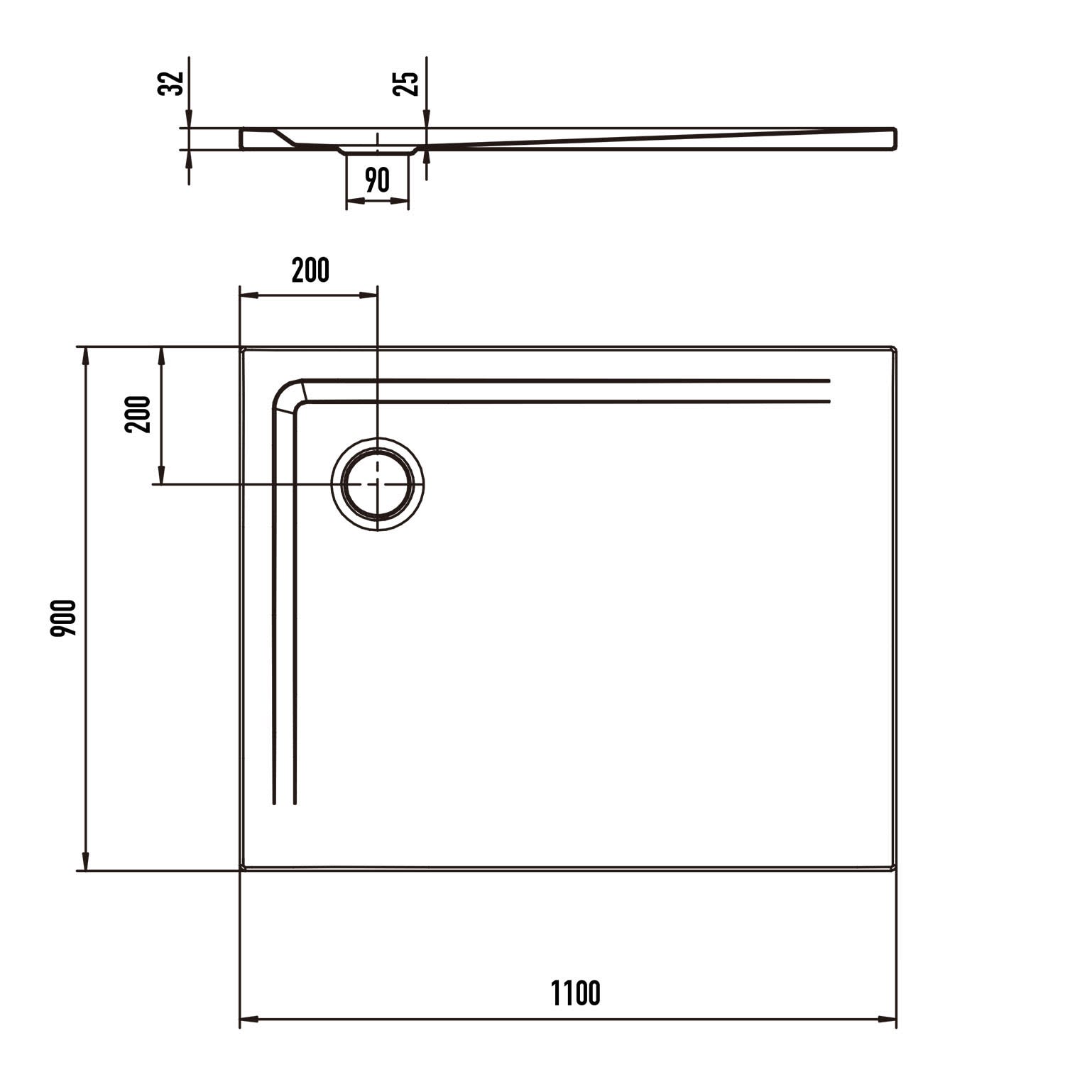 - Ablaufloch Ø 9 cm
