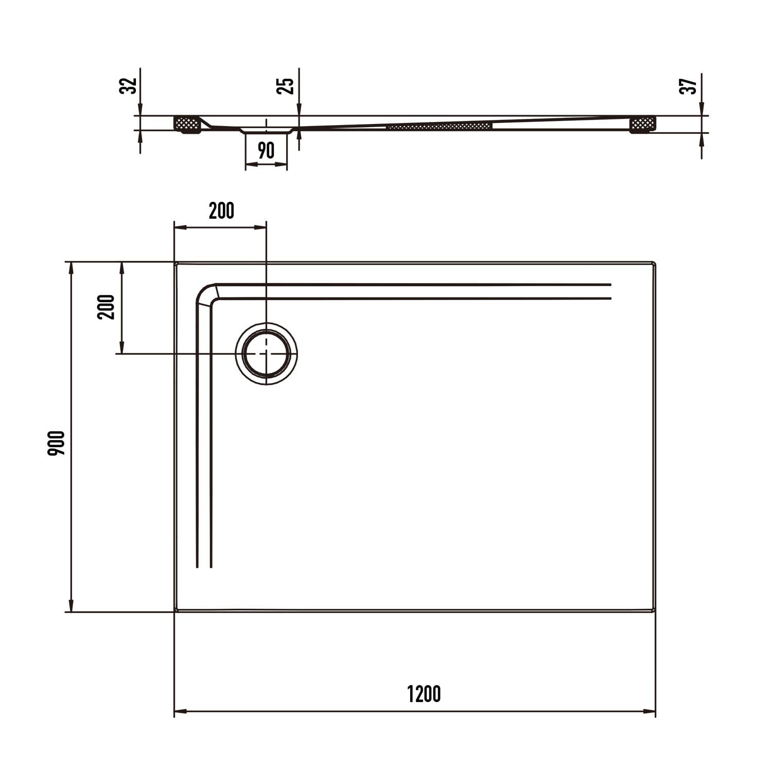 Kaldewei SUPERPLAN 1851-5 Duschwanne 90 x 120 cm mit Secure Plus, inkl. Wannenträger extraflach