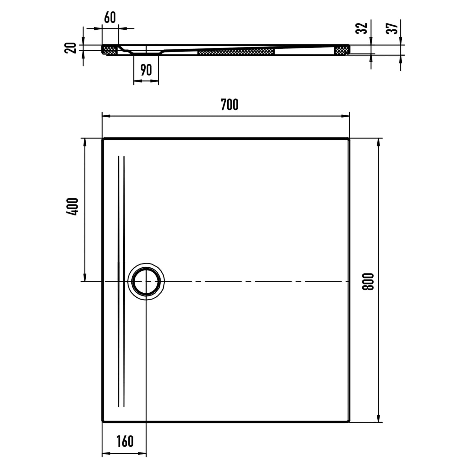 - Ablaufloch Ø 9 cm