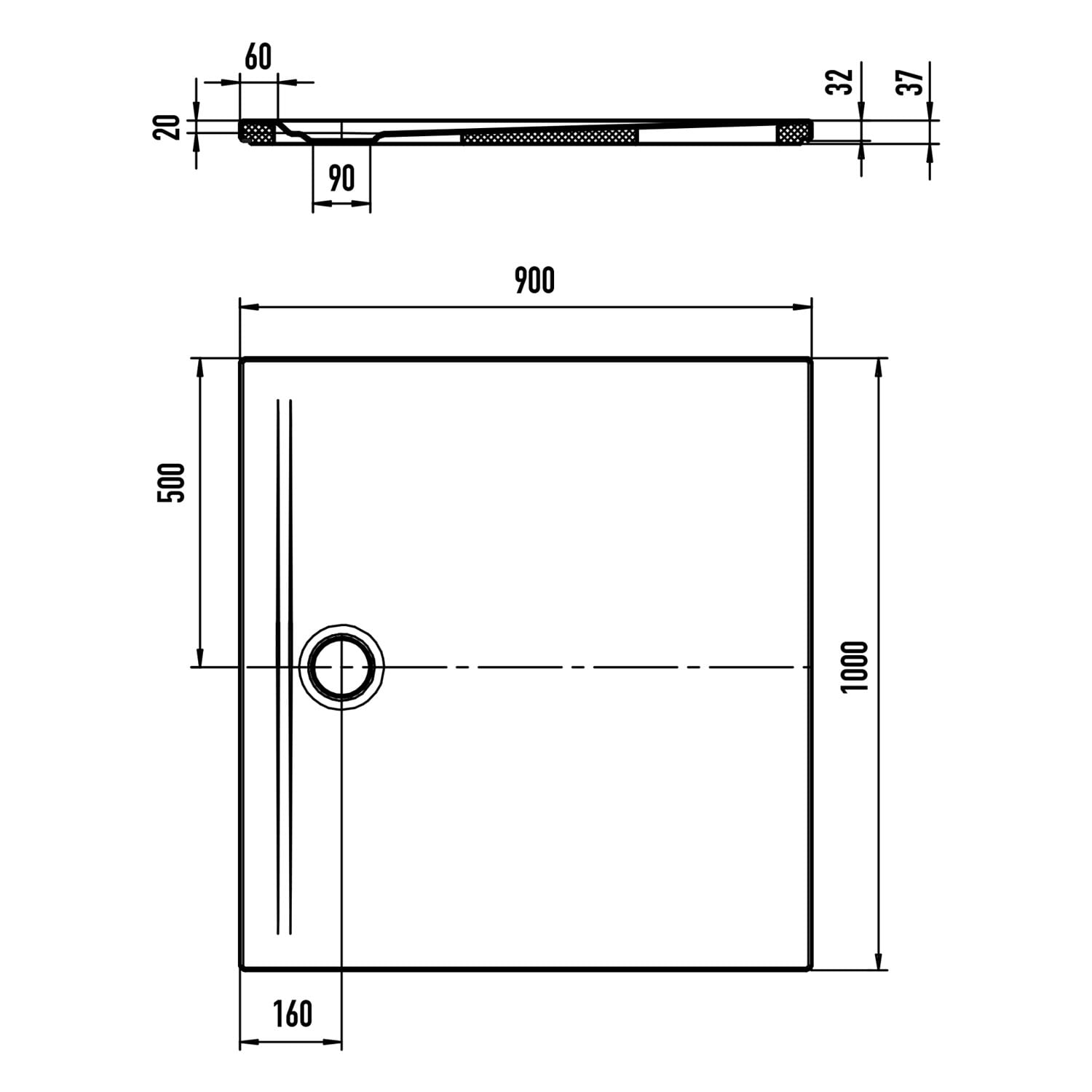 - Ablaufgarnitur KA 90 perfekt auf Duschfläche abgestimmt