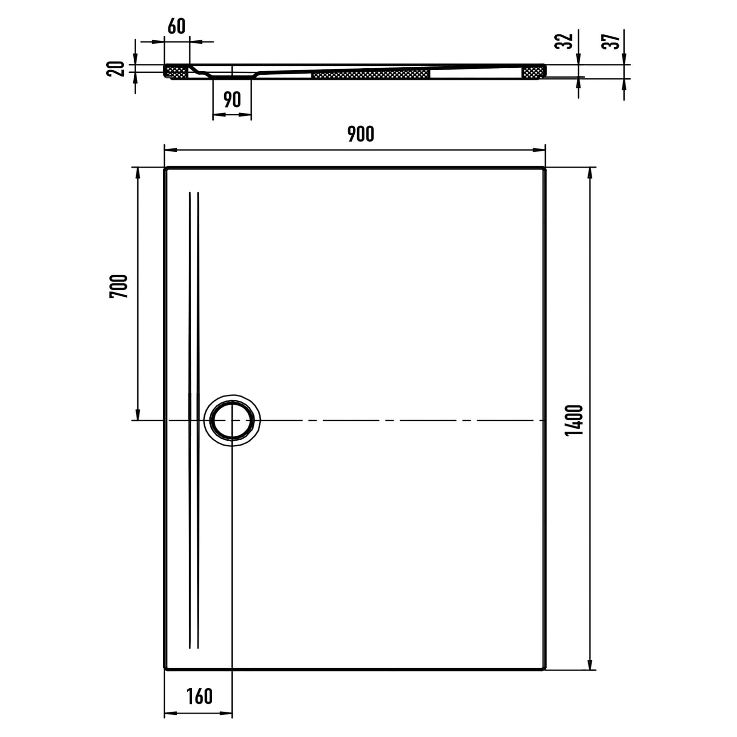 Kaldewei SUPERPLAN ZERO 1578-5 Duschwanne 90 x 140 cm, inkl. Wannenträger extraflach