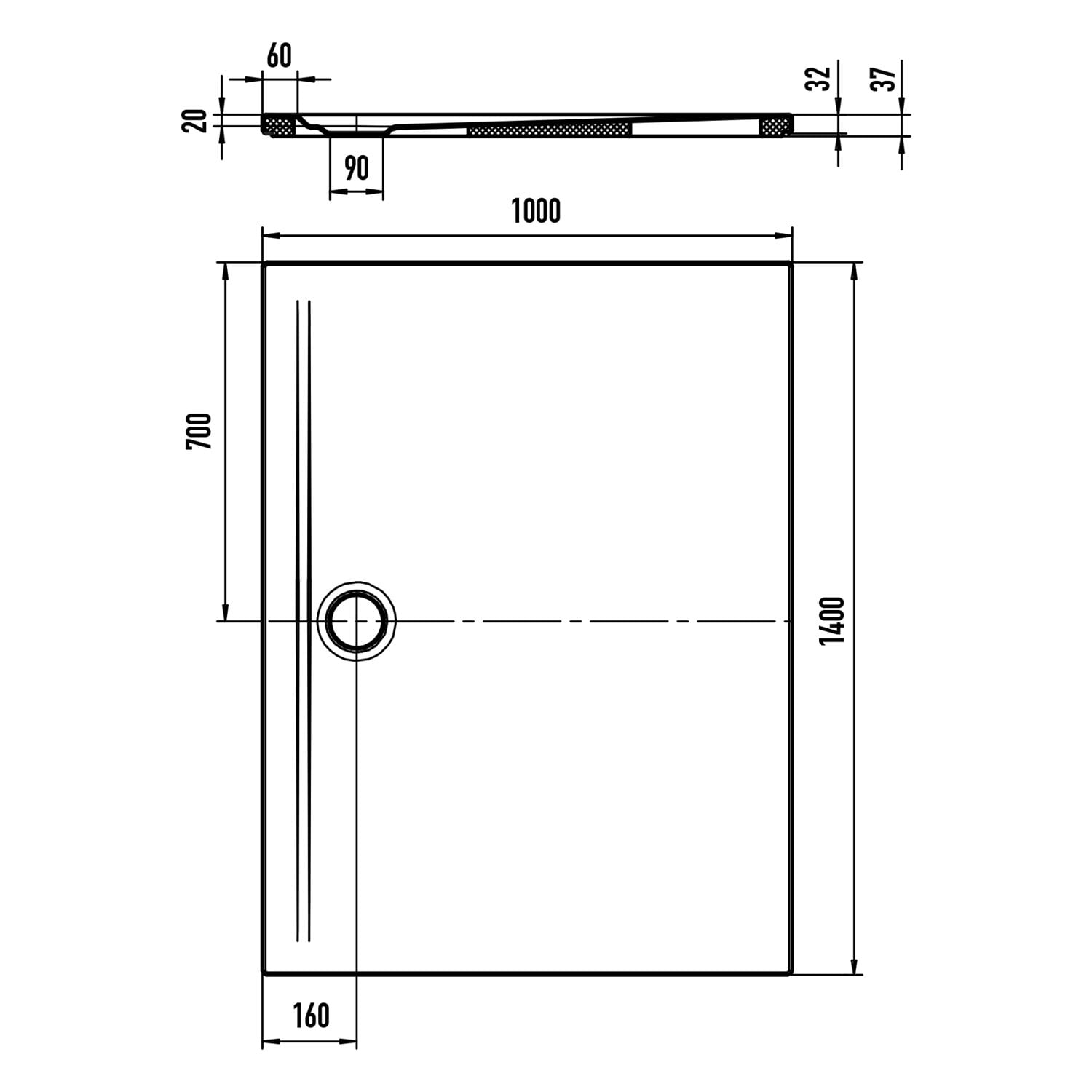 Kaldewei SUPERPLAN ZERO 1580-5 Duschwanne 100 x 140 cm mit Invisible Grip, inkl. Wannenträger extraflach