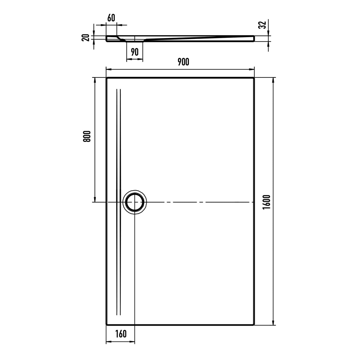 - Ablaufloch Ø 9 cm