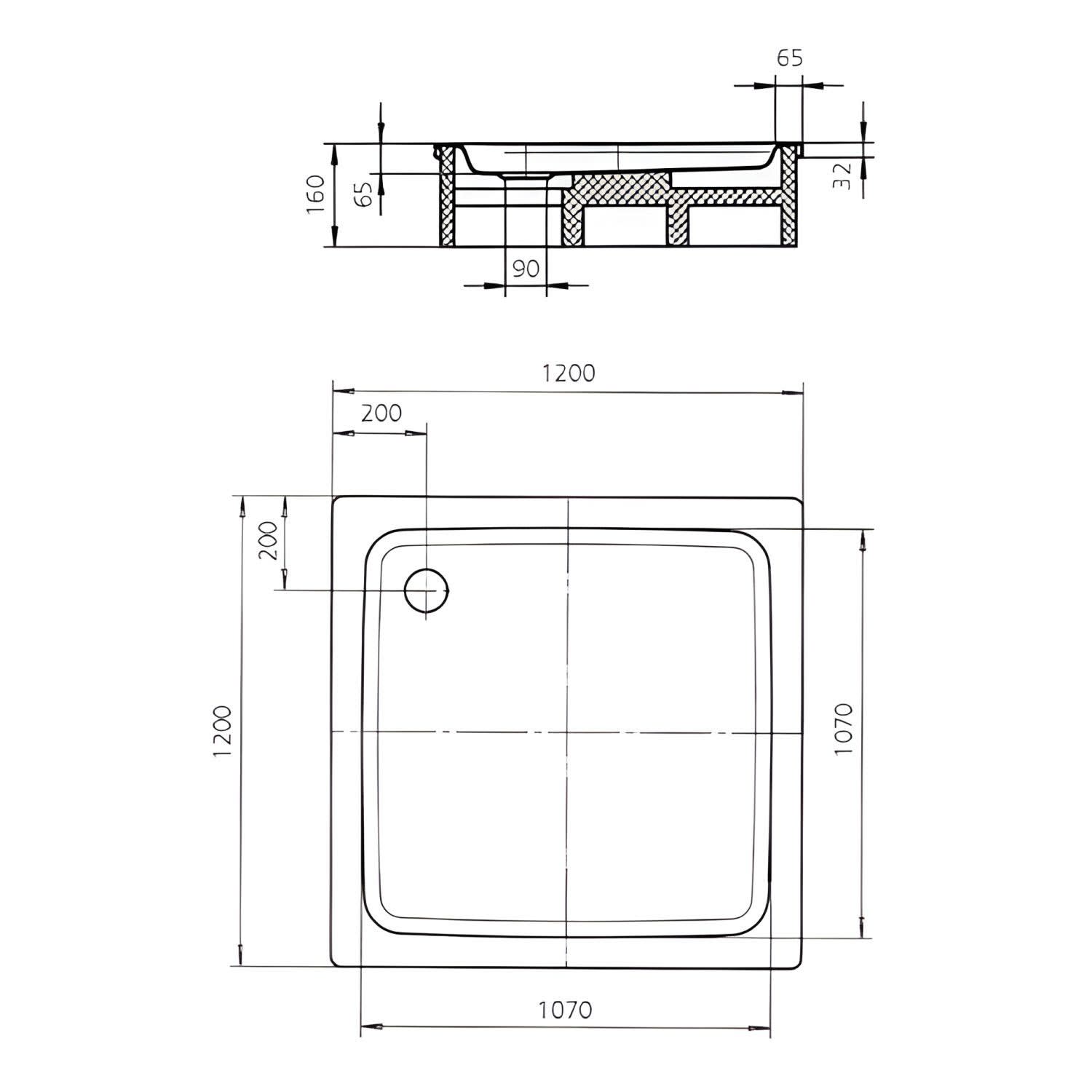 Kaldewei Duschplan 422-2 Duschwanne 120 x 120 x 6,5 cm mit Wannenträger