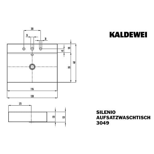 Kaldewei SILENIO Aufsatz-Doppelwaschtisch 3049-D mit 2 Hahnlochbohrungen, 120 cm