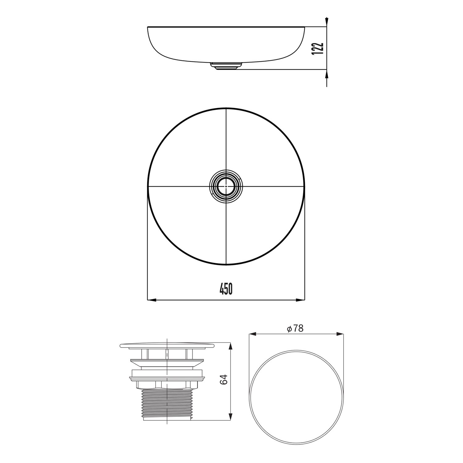 Kronenbach Tube Aufsatzwaschtisch Ø 46 cm