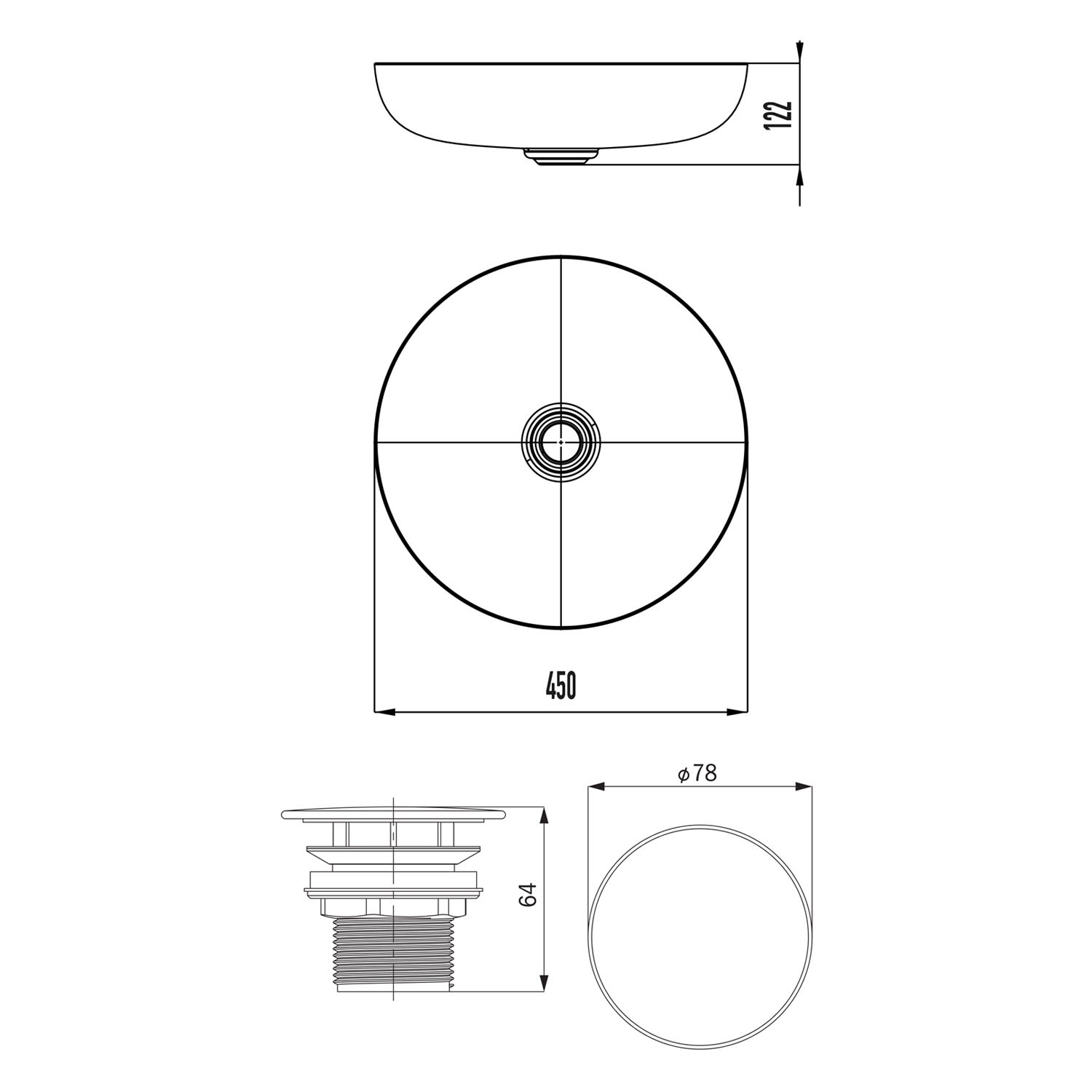 Steinberg Serie 740 Aufsatzwaschtisch Ø 40 cm