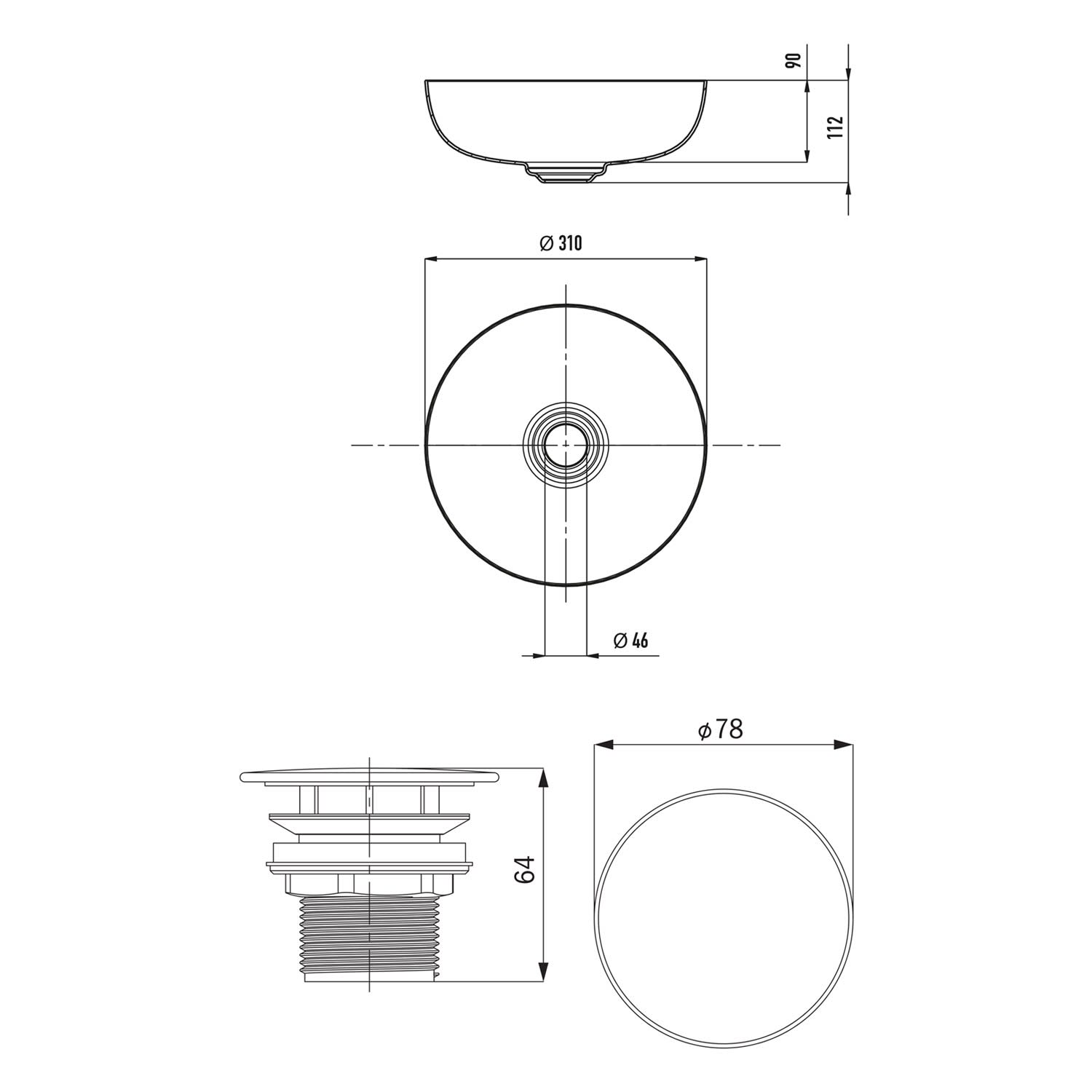 MIENA Waschtisch-Schale 3193 & Permanentablaufventil 3904 - Innovatives Set für stilvolle Badgestaltung