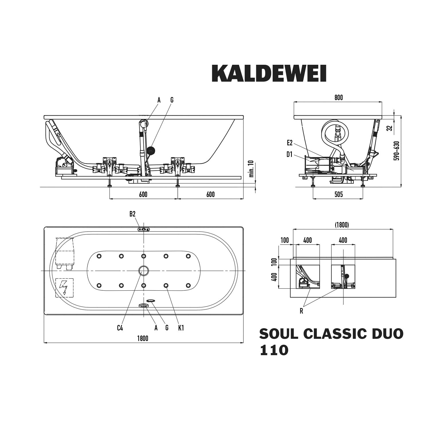 Kaldewei Classic Duo 110 Whirlpool mit SOUL Whirlsystem, Ab-und Überlauf mit Wassereinlauf