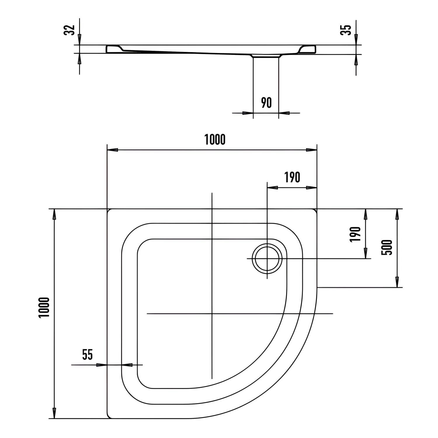 Kaldewei Zirkon 606-1 Viertelkreis-Duschwanne 100 x 100 x 3,5 cm