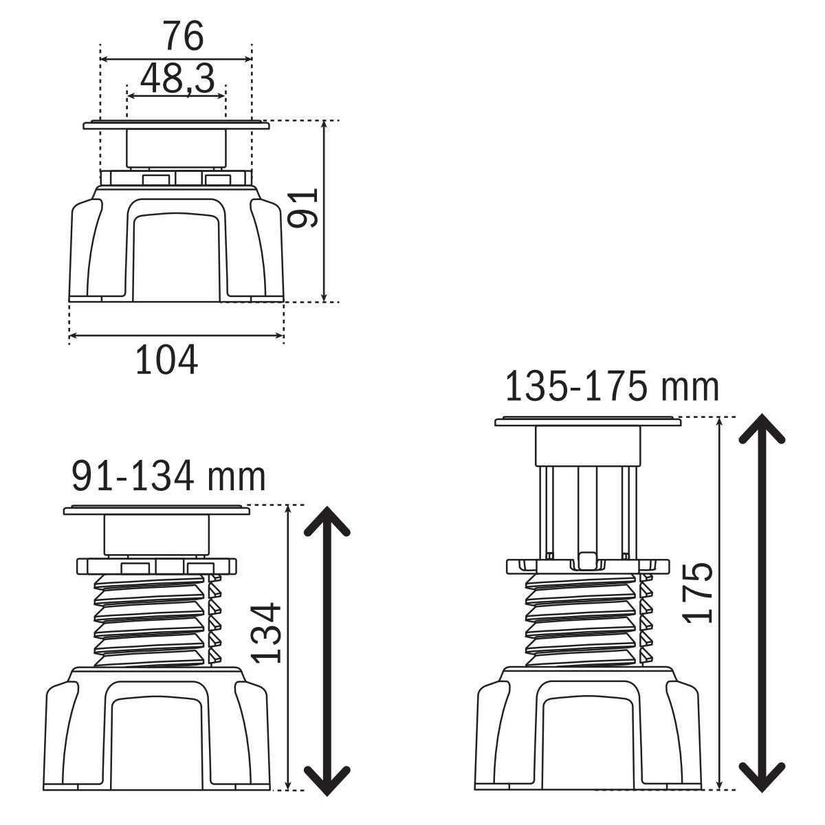 - Einstellbereich von 9,1 bis 17,5 cm
