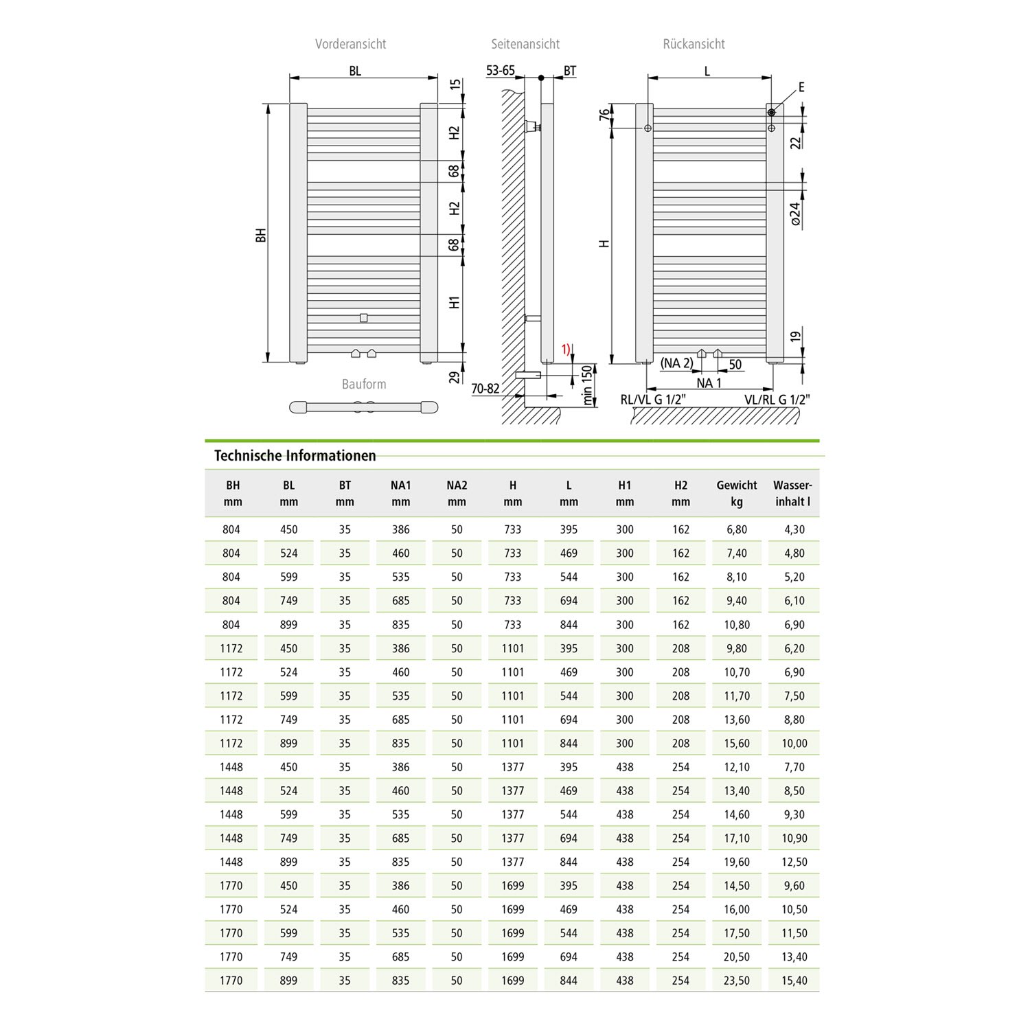 - Bauseits ist der Wandbaustoff auf ausreichende Tragfähigkeit zu prüfen