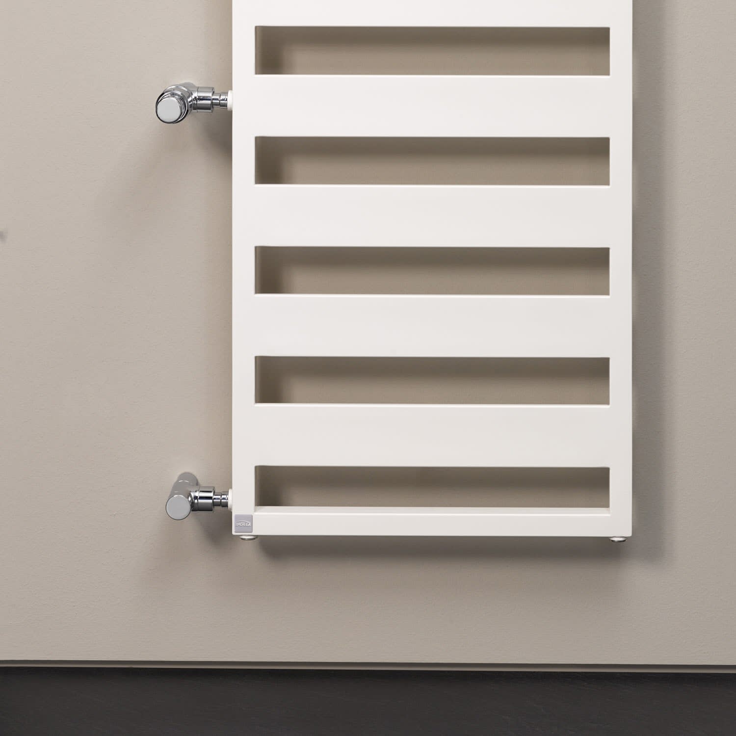 - seitliche Anschlüsse links zum Austausch von DIN-Radiatoren und Kermi Flachheizkörper