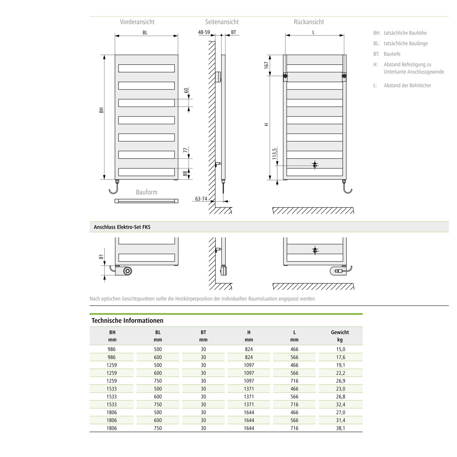 Kermi Casteo-E Badheizkörper 60 x 3 x 153,3 cm inkl. Elektro-Set FKS rechts