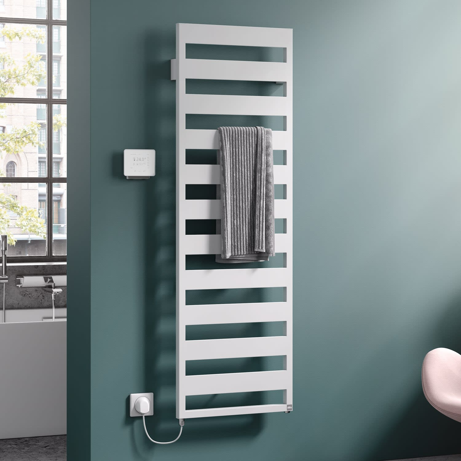 - Raumtemperaturunabhängige, tagesindividuelle Handtuchwärmerfunktion während programmierter Zeitintervalle