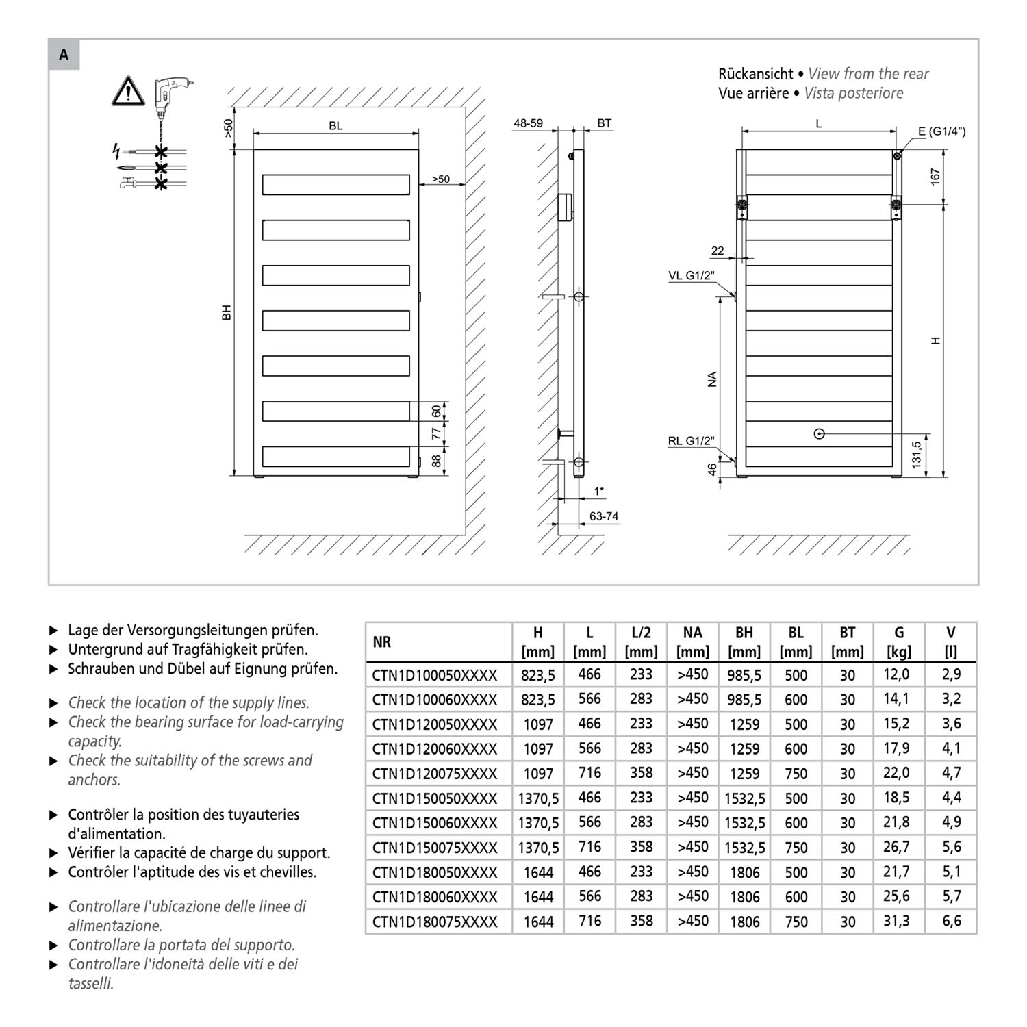 - bauseits ist der Wandbaustoff auf ausreichende Tragfähigkeit zu prüfen