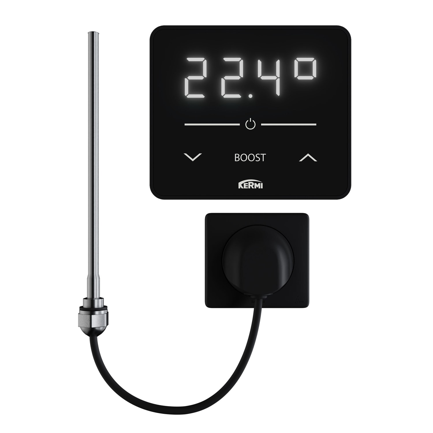 - Umstellung von Raumtemperaturregelung auf Handtuchwärmerfunktion im Einstellmenü des Reglers möglich