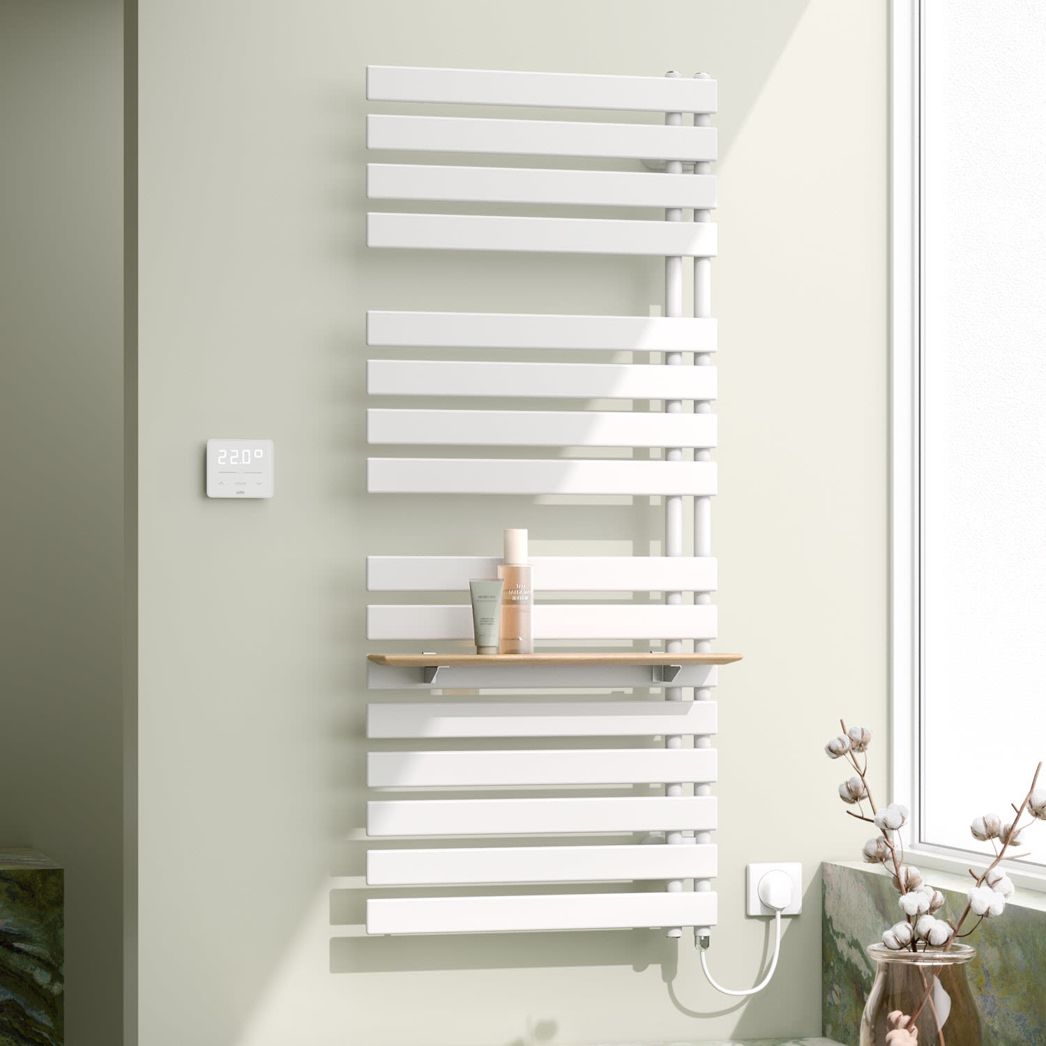 - Umstellung von Raumtemperaturregelung auf Handtuchwärmerfunktion im Einstellmenü des Reglers möglich