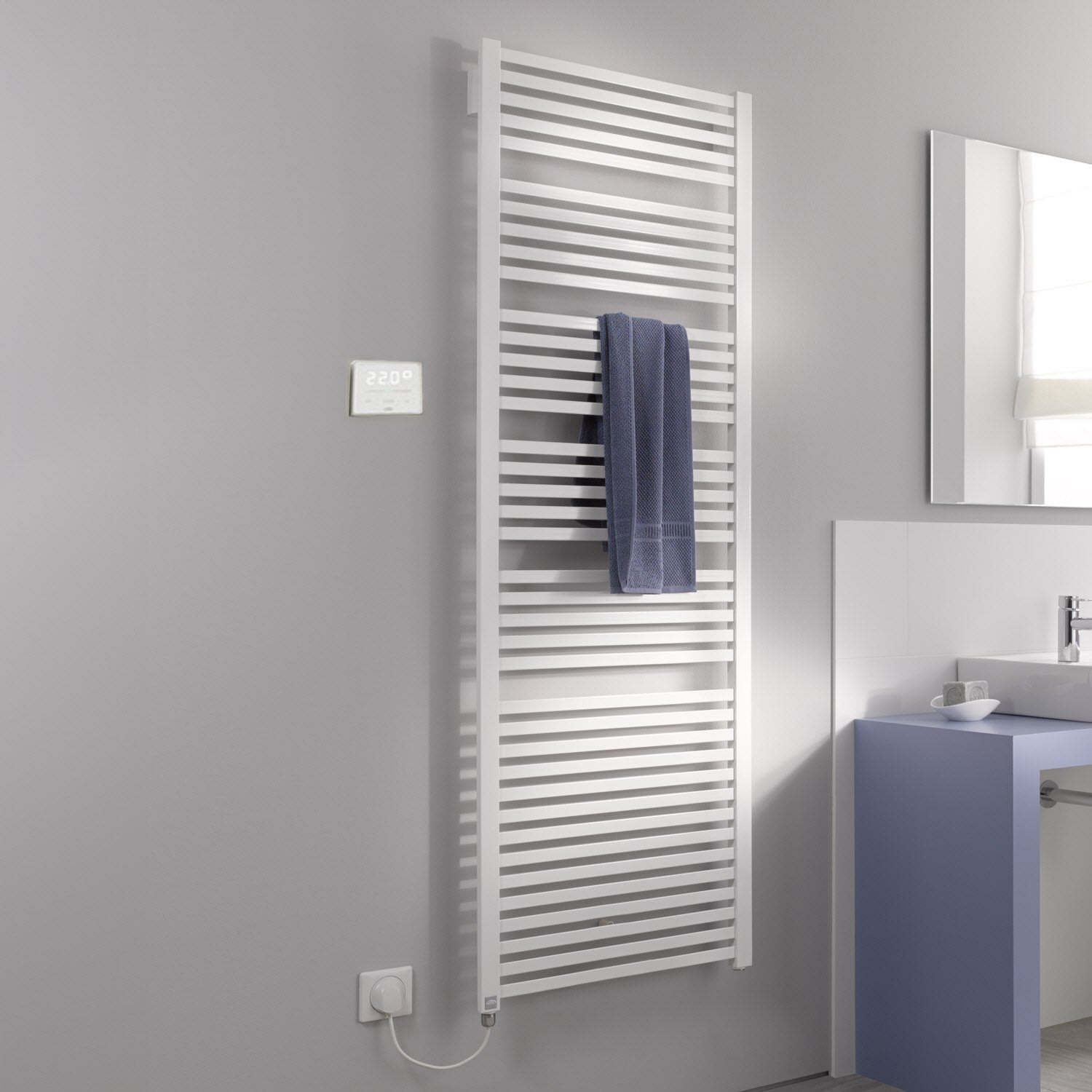 - Umstellung von Raumtemperaturregelung auf Handtuchwärmerfunktion im Einstellmenü des Reglers möglich