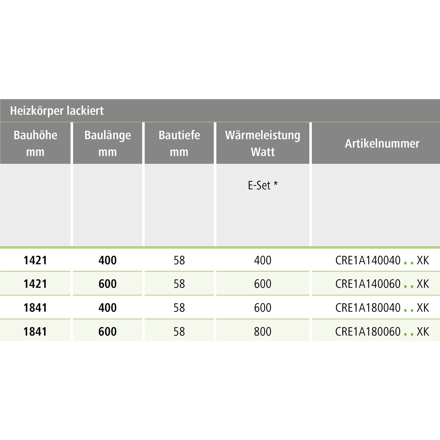 Wärmeleistung E-Set: