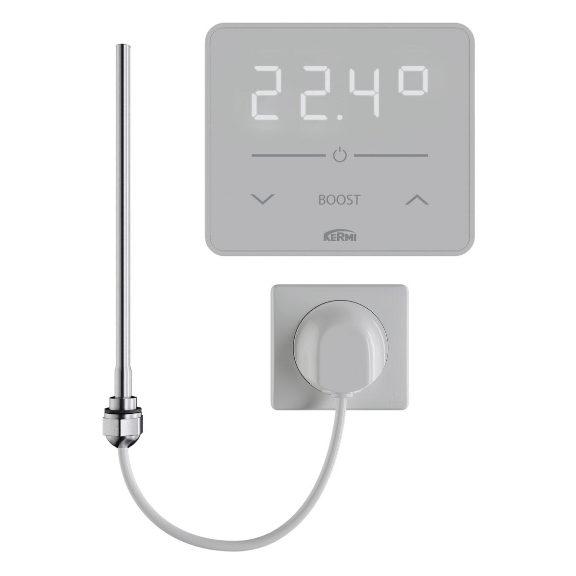 - Umstellung von Raumtemperaturregelung auf Handtuchwärmerfunktion im Einstellmenü des Reglers möglich