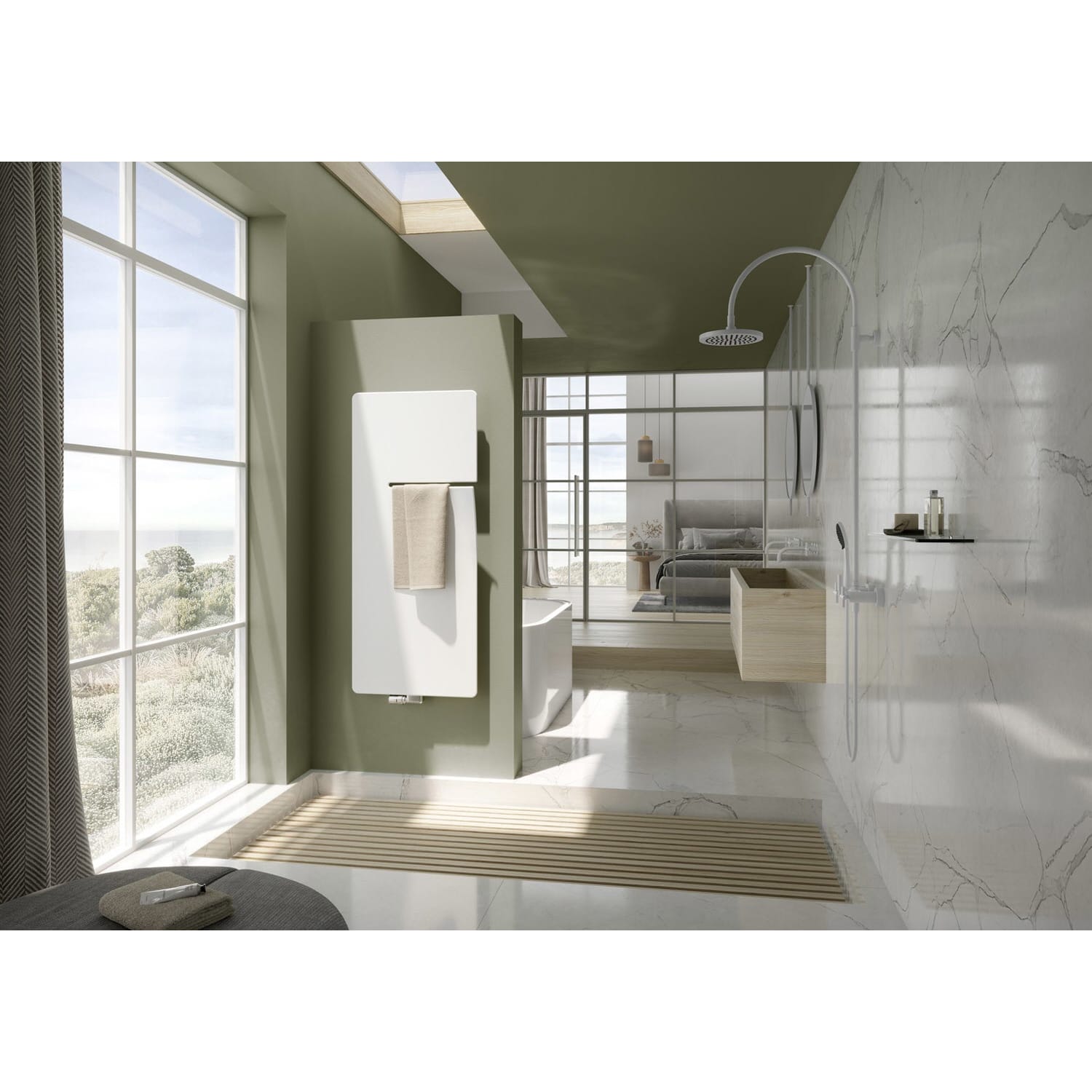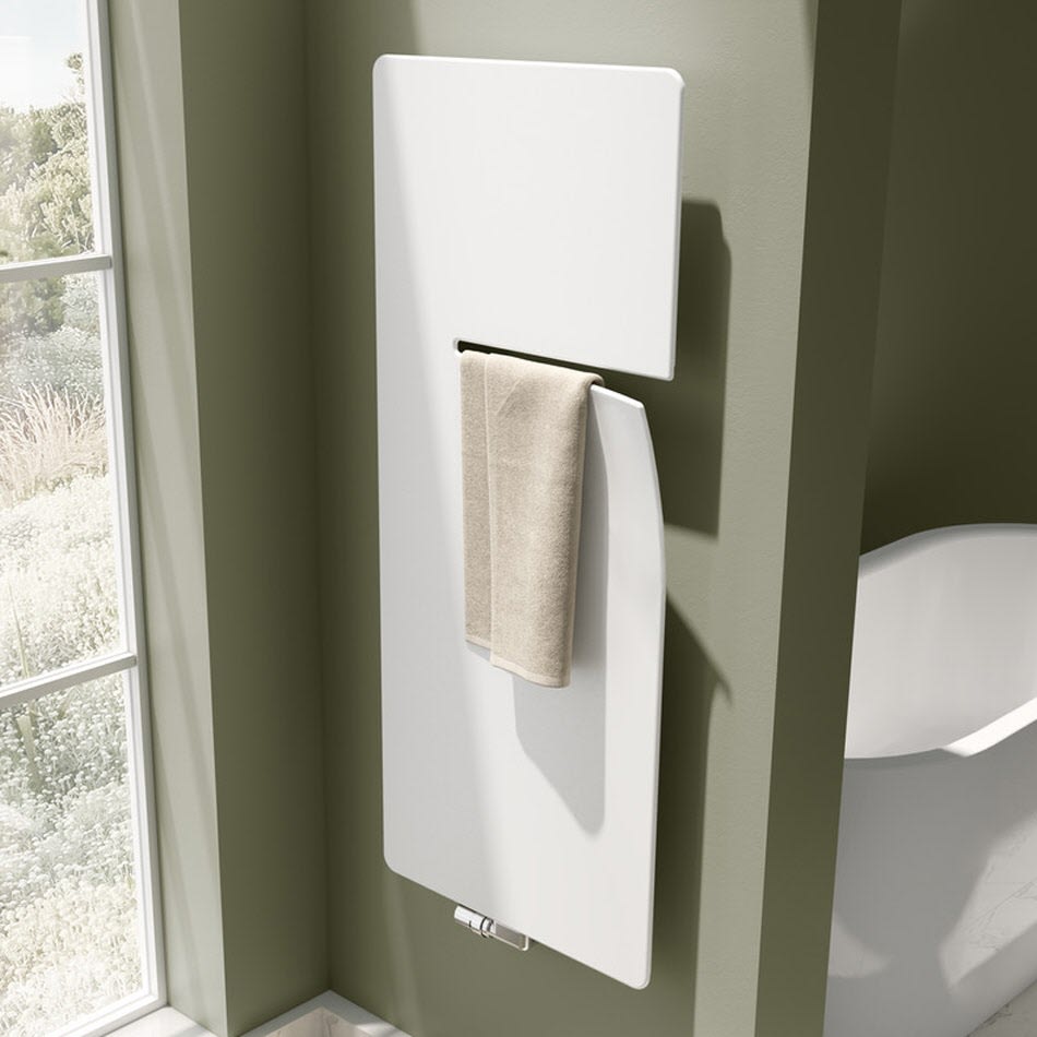 Der Bad- und Wohnheizkörper bringt das Besondere im Außergewöhnlichen zum Vorschein. Sein zeitlos flächiges Design wird durchbrochen von einer einzigartigen, seitlichen Aussparung. Sie ist gleichermaßen optisches Highlight und komfortables Detail zum bequemen Einfädeln und wieder Aufnehmen des Handtuchs - angenehm vorgewärmt und genau in bedienerfreundlicher Höhe.