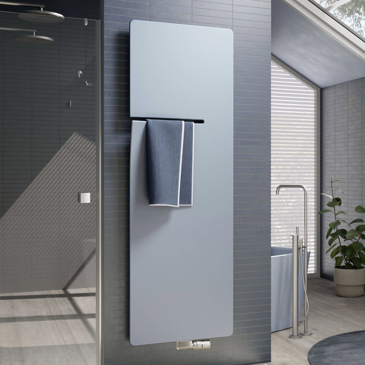 Der Bad- und Wohnheizkörper bringt das Besondere im Außergewöhnlichen zum Vorschein. Sein zeitlos flächiges Design wird durchbrochen von einer einzigartigen, seitlichen Aussparung. Sie ist gleichermaßen optisches Highlight und komfortables Detail zum bequemen Einfädeln und wieder Aufnehmen des Handtuchs - angenehm vorgewärmt und genau in bedienerfreundlicher Höhe.