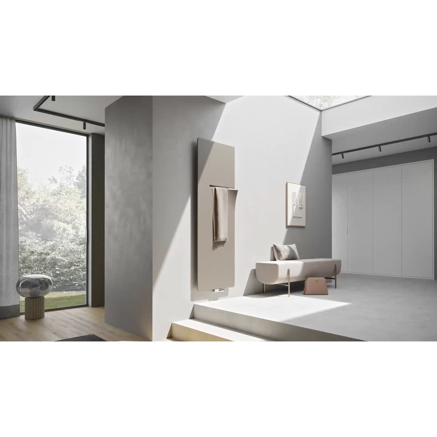 Der Bad- und Wohnheizkörper bringt das Besondere im Außergewöhnlichen zum Vorschein. Sein zeitlos flächiges Design wird durchbrochen von einer einzigartigen, seitlichen Aussparung. Sie ist gleichermaßen optisches Highlight und komfortables Detail zum bequemen Einfädeln und wieder Aufnehmen des Handtuchs - angenehm vorgewärmt und genau in bedienerfreundlicher Höhe.