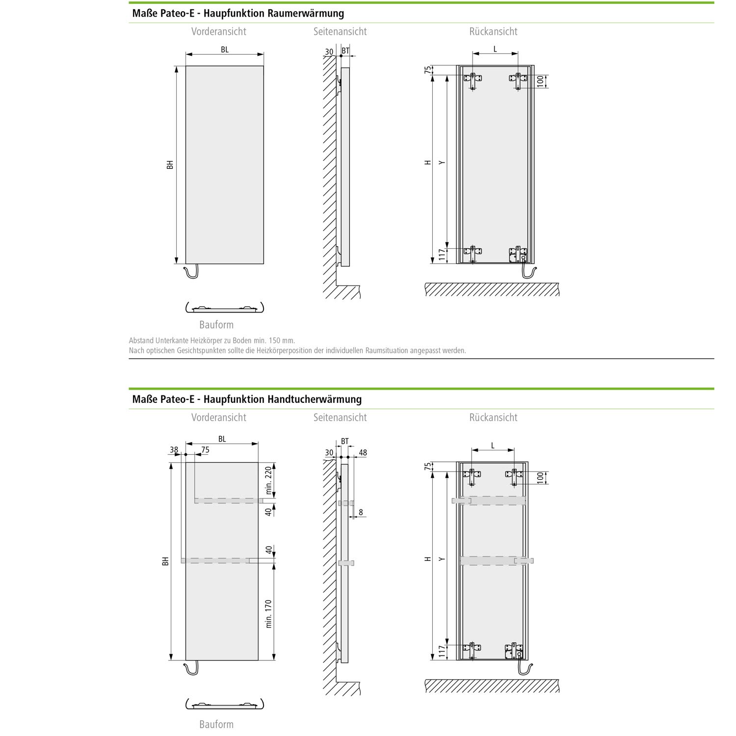 - rein elektrischer Strahlungsheizkörper mit durchgängiger Planfront aus Metall